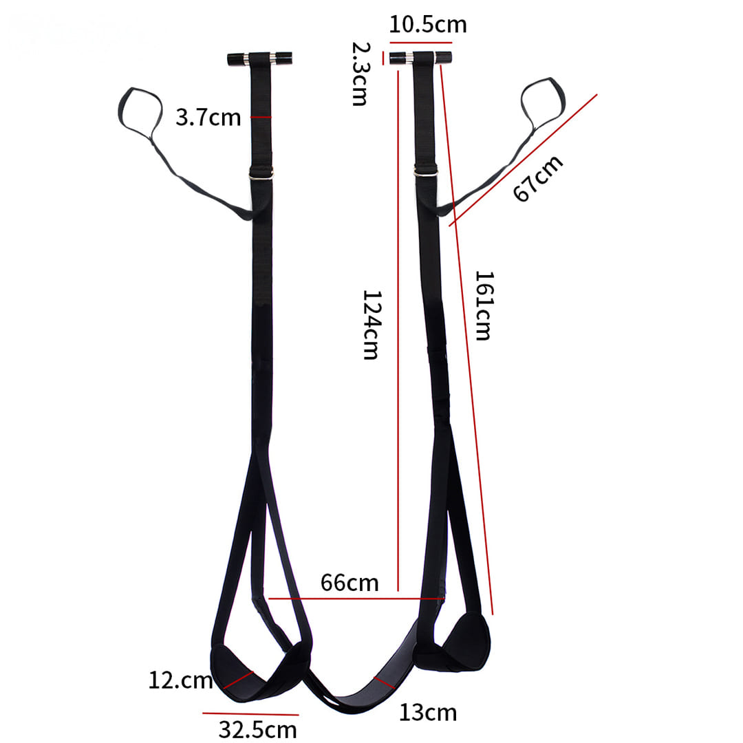 Гойдалка надійно кріпиться до дверей і не потребує стаціонарного монтажу. Завдяки регульованій конструкції та фіксаторам для рук, ніг і тіла, вона дозволяє зафіксувати партнера, відкриваючи повну свободу для експериментів.