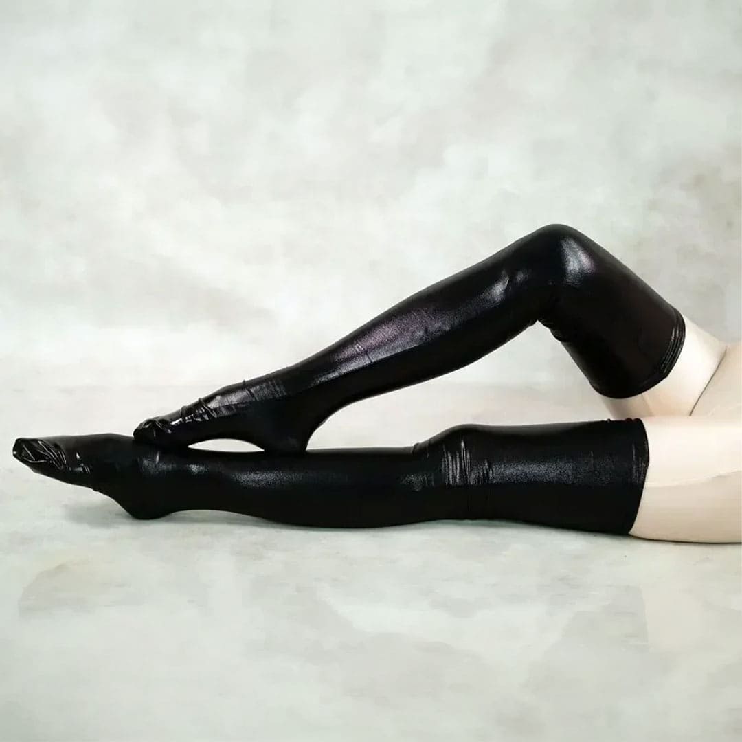 Блискучі панчохи металік (з диско-трикотажу, біфлекс з напиленням) на резинці з бічними швами.