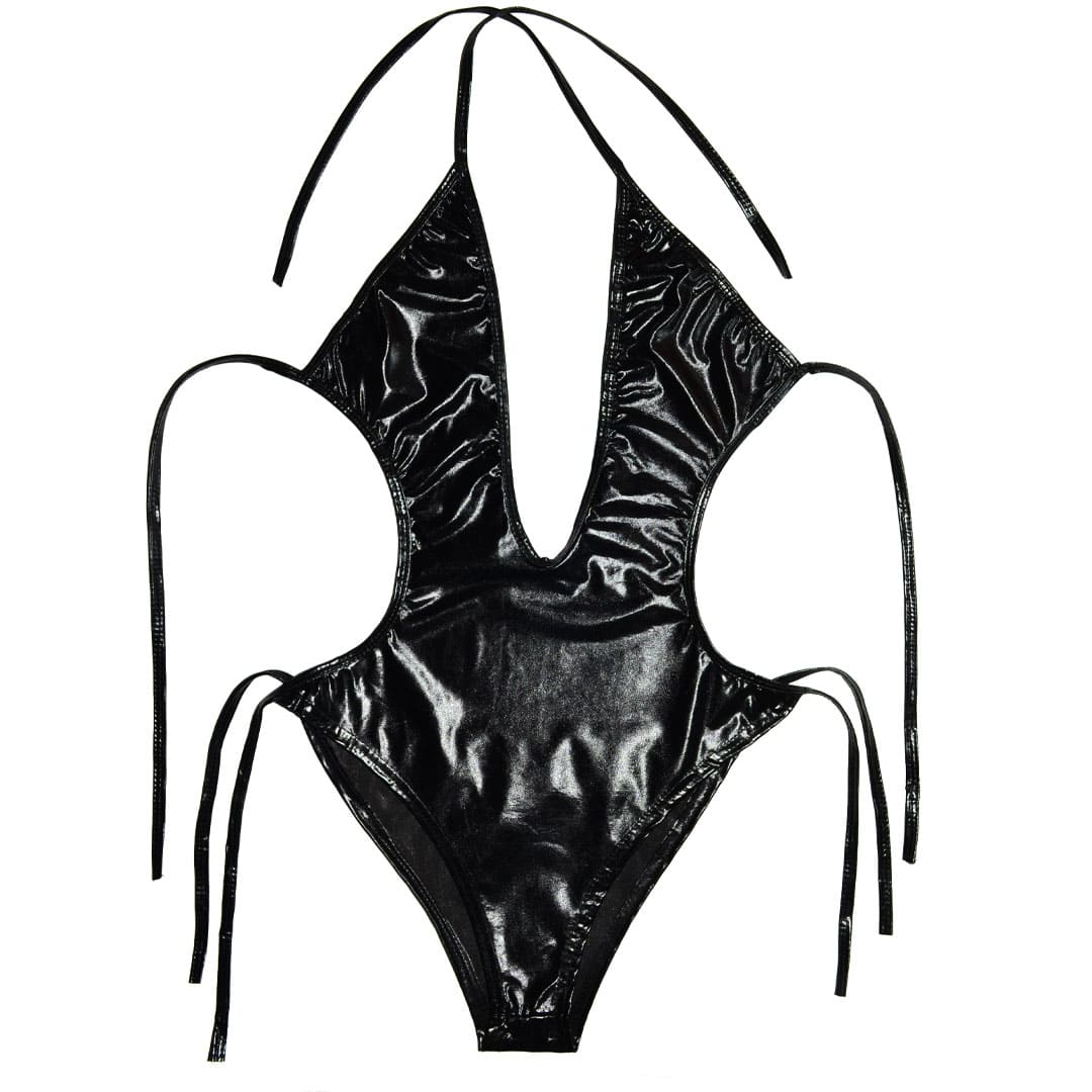 Блискучі боді-монокіні металік (з диско-трикотажу, біфлекс з напиленням) через шию на крест, перед з двох частин переходять у труси, зав'язується ззаду в ділянці грудей і на стегнах з боків, ззаду труси сліпами.