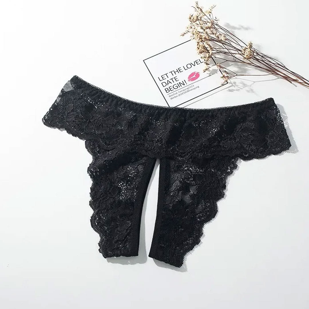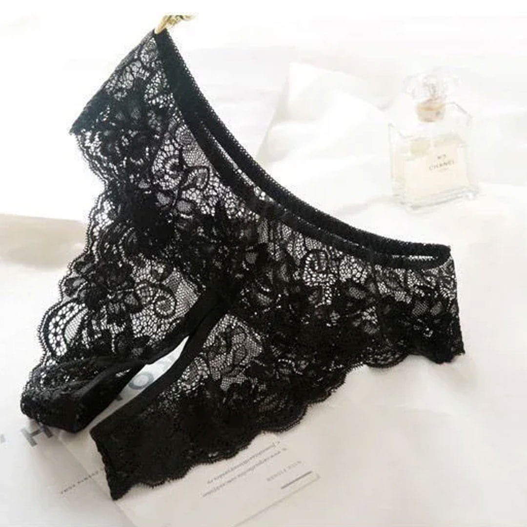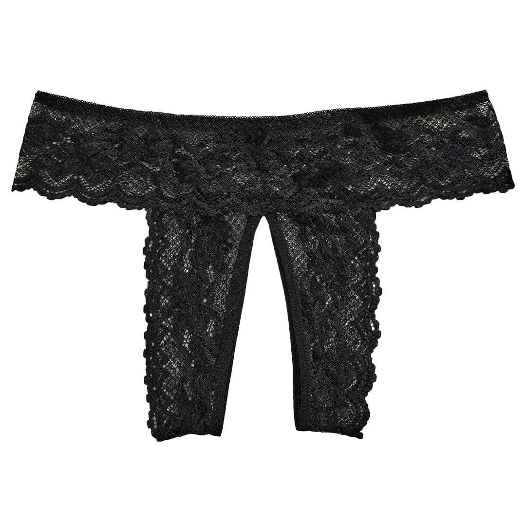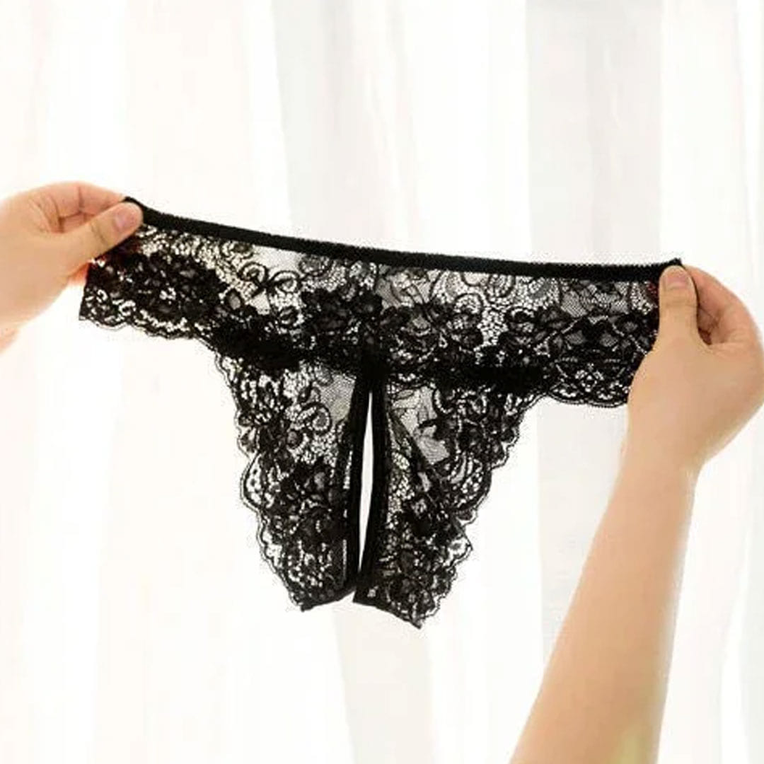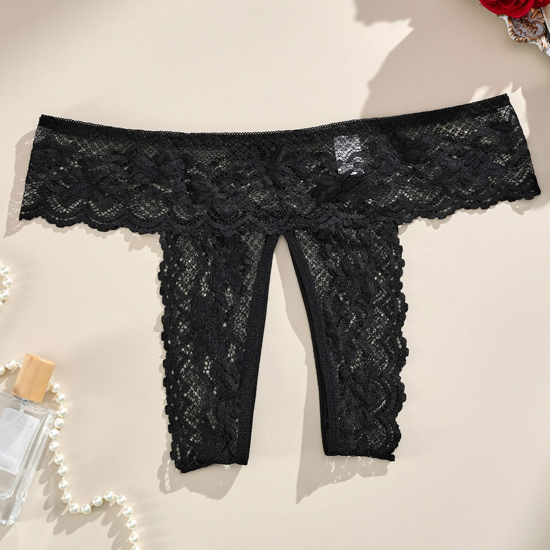 Чорні еротичні мереживні трусики з відкритим доступом.