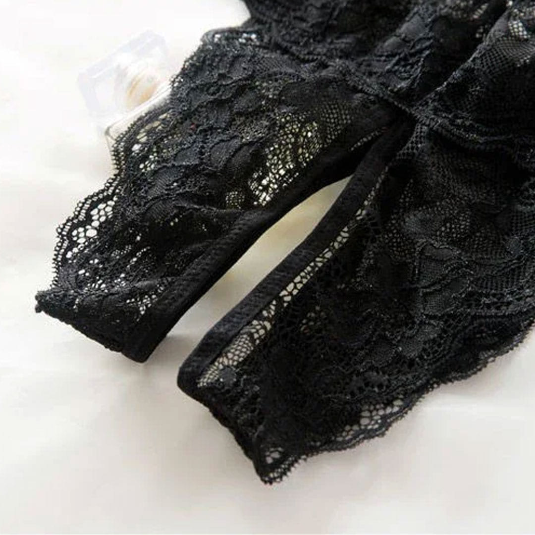 Виконані з м’якого білого мережива, вони приємно прилягають до тіла, залишаючи відкритий доступ для сміливих експериментів і пристрасних моментів.