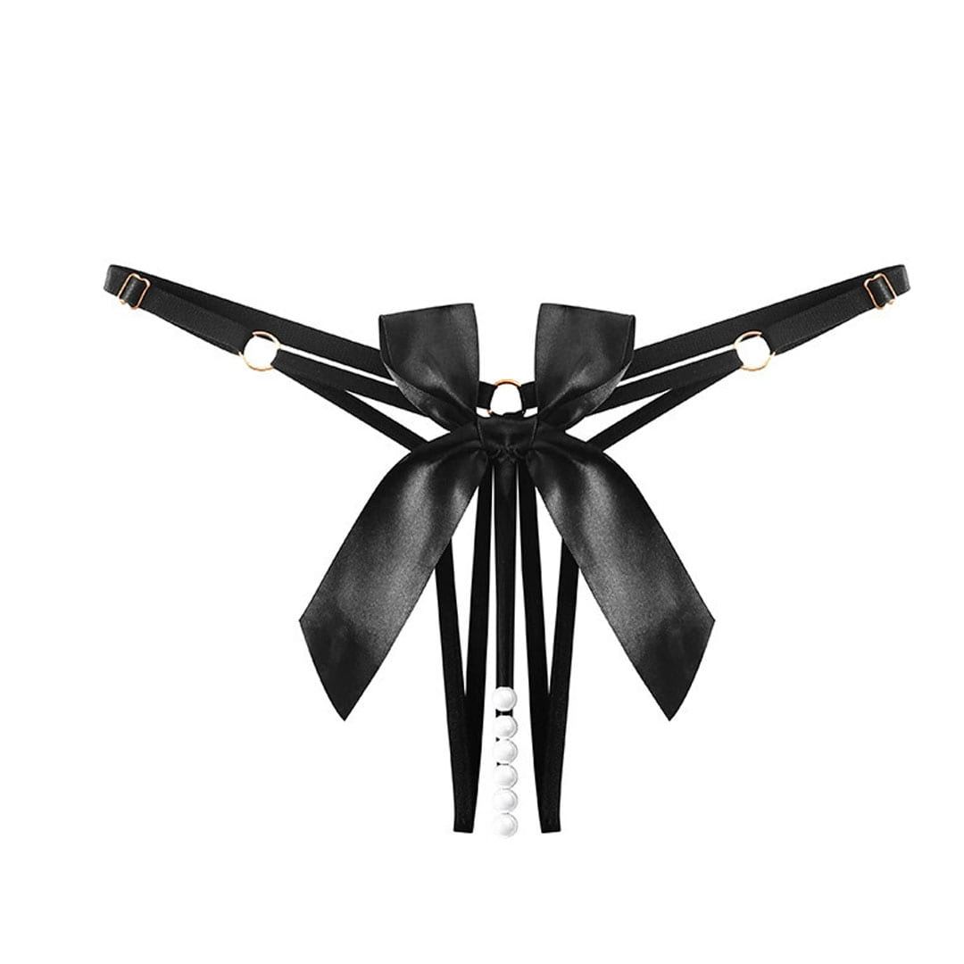 Виконані з еластичного матеріалу чорного кольору, вони мають перлину нитку по центру для ніжної стимуляції та бантик спереду, що додає шарму. Завдяки регульованій резинці трусики ідеально сідають по фігурі.