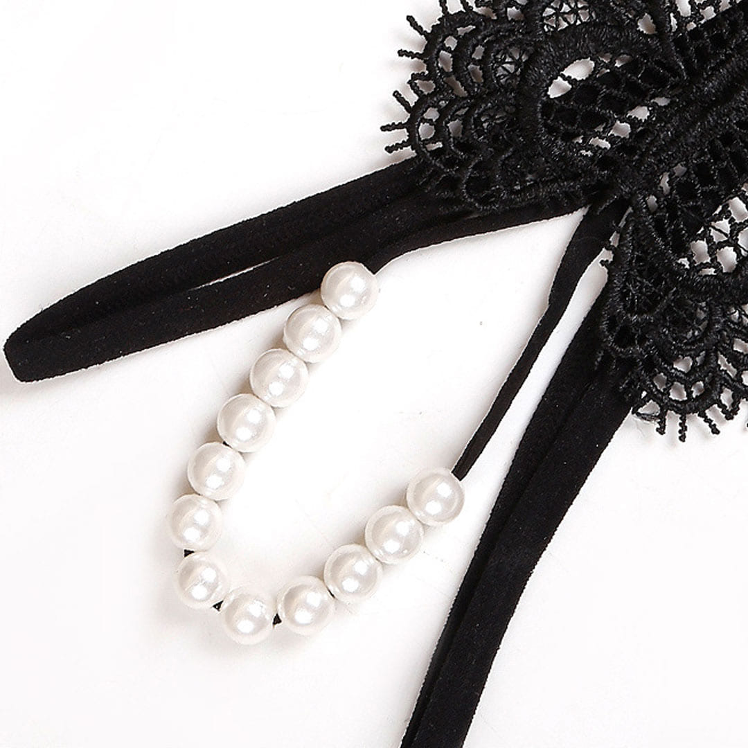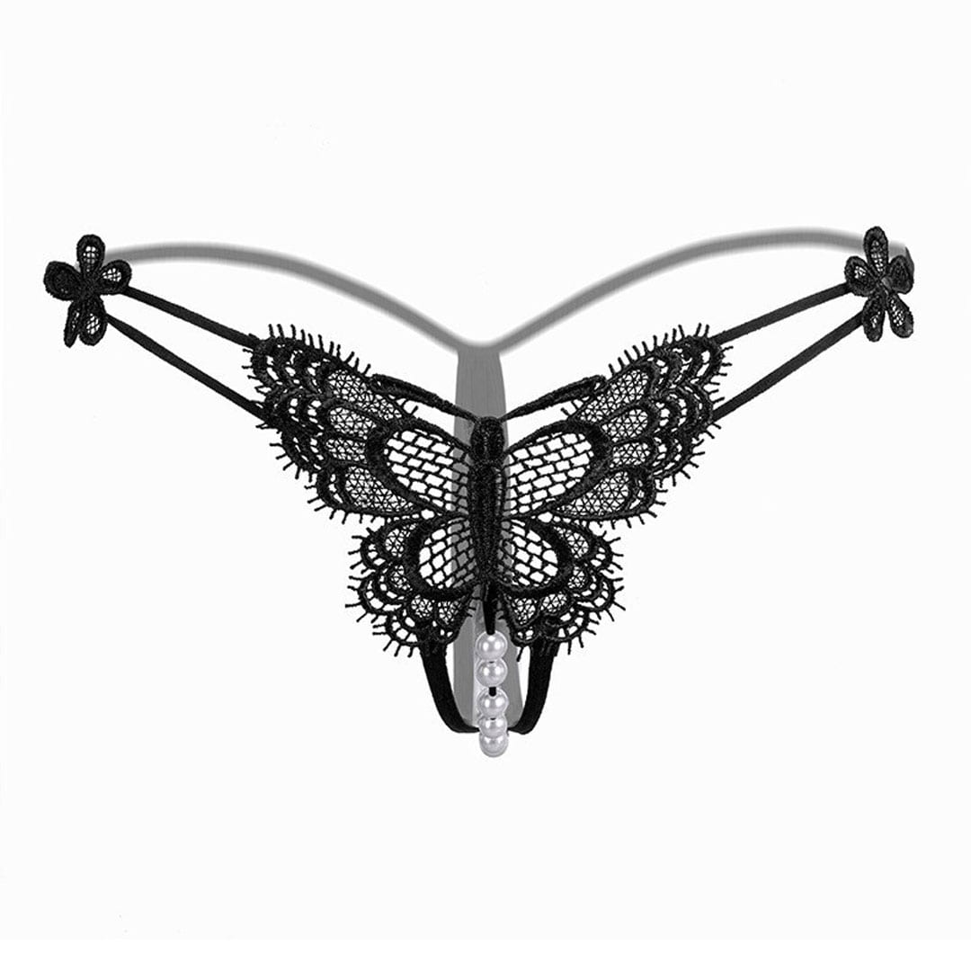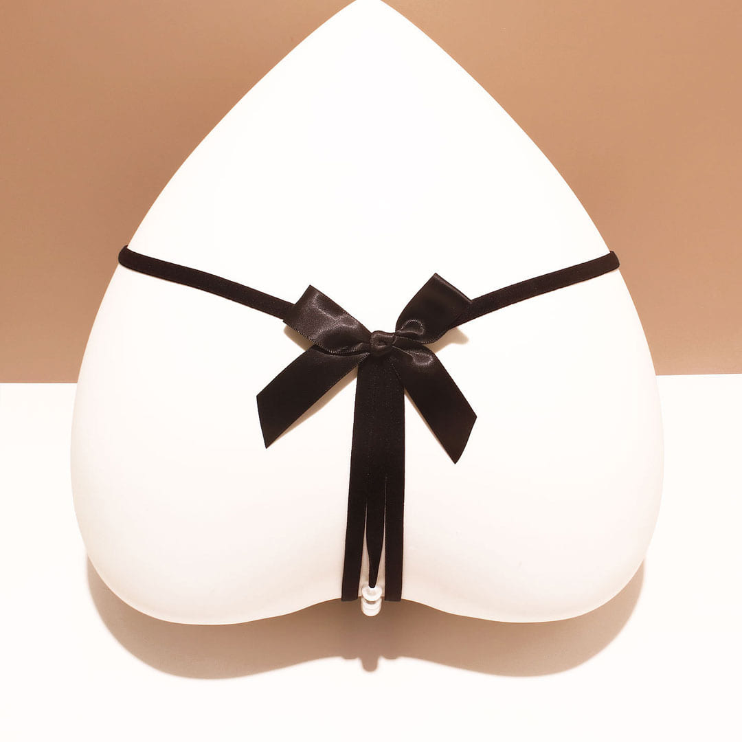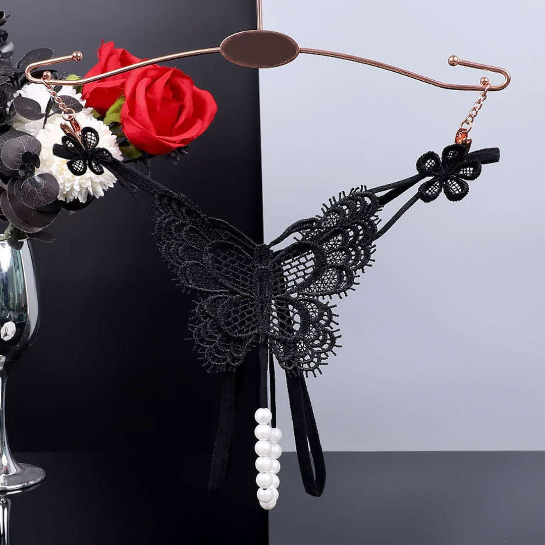 Чорні еротичні трусики з перлинною ниткою та мереживом у формі метелика.