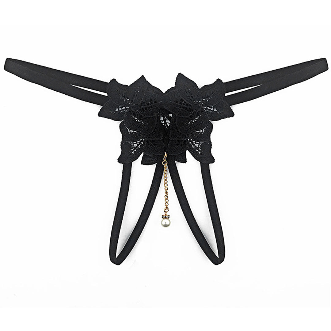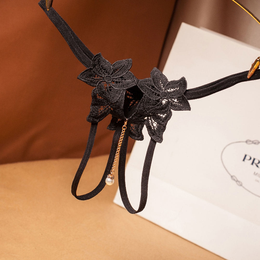 Чорні мереживні трусики з перлинною на ланцюжу.