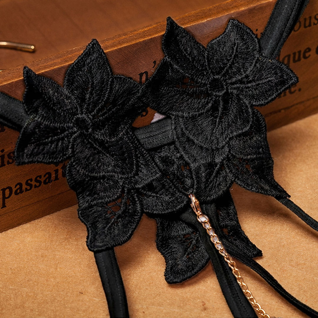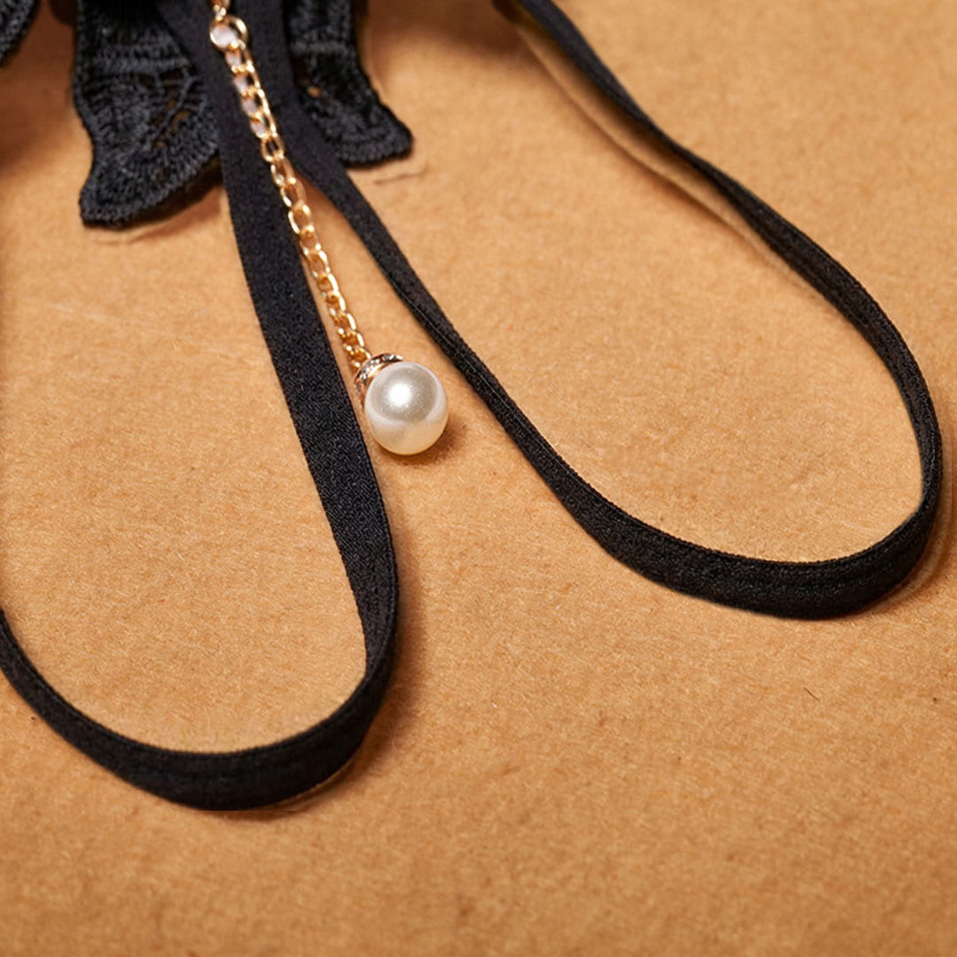 Чорний колір і витончене мереживо у формі квітки створюють ефектний та жіночний образ, а перлинна нитка на делікатному ланцюжку додає пікантного акценту та особливої чуттєвості.