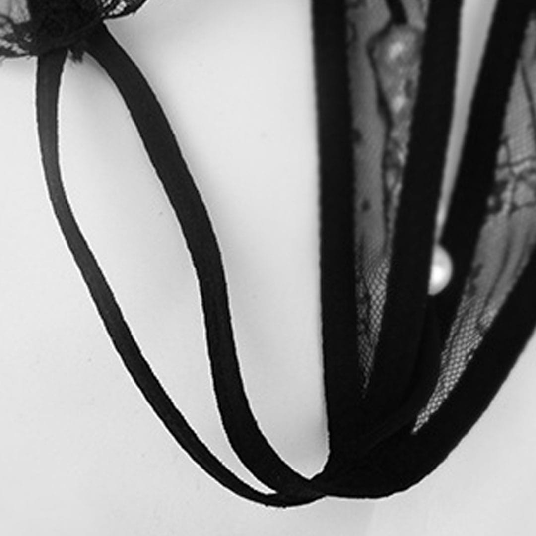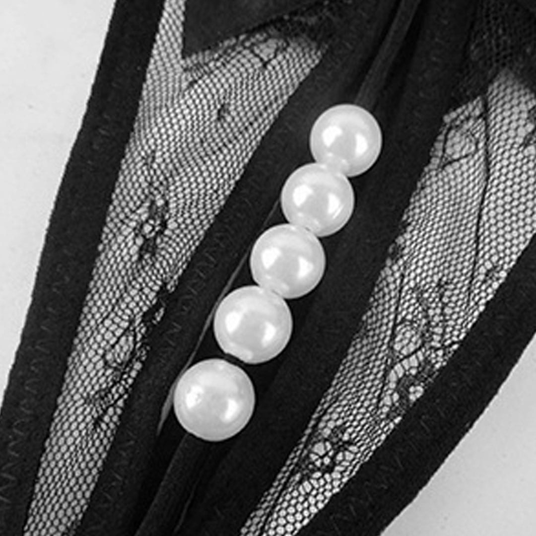 По центру розташований акуратний бантик, декорований перлинною ниткою, що додає образу витонченості та пікантного акценту.
