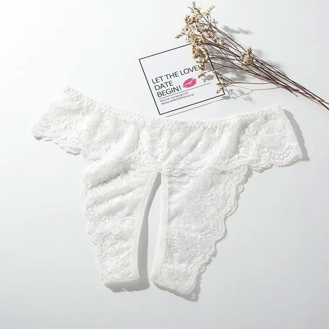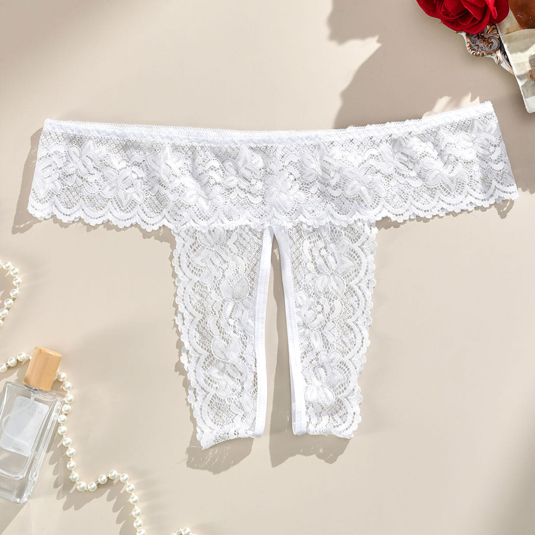 Білі еротичні мереживні трусики з відкритим доступом.