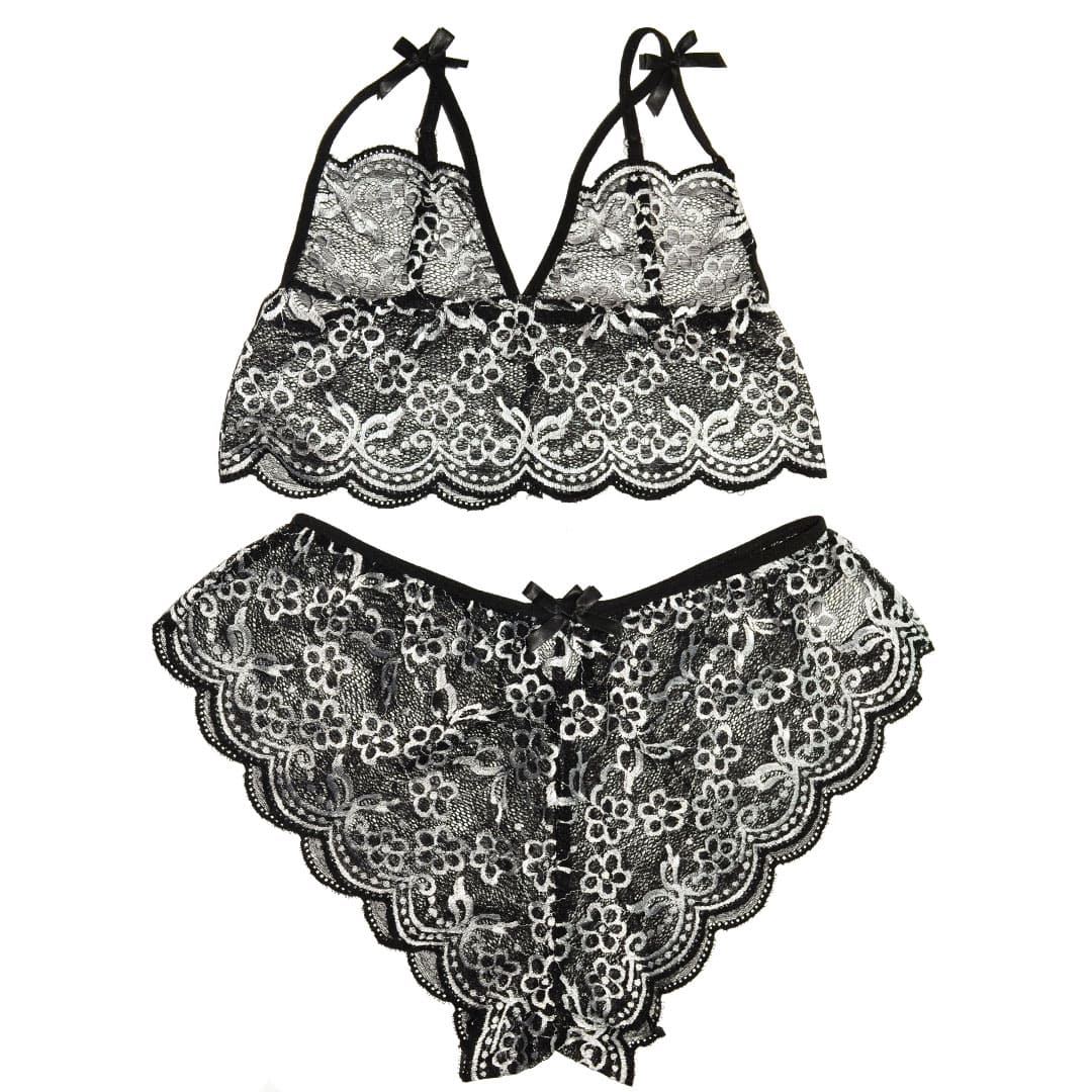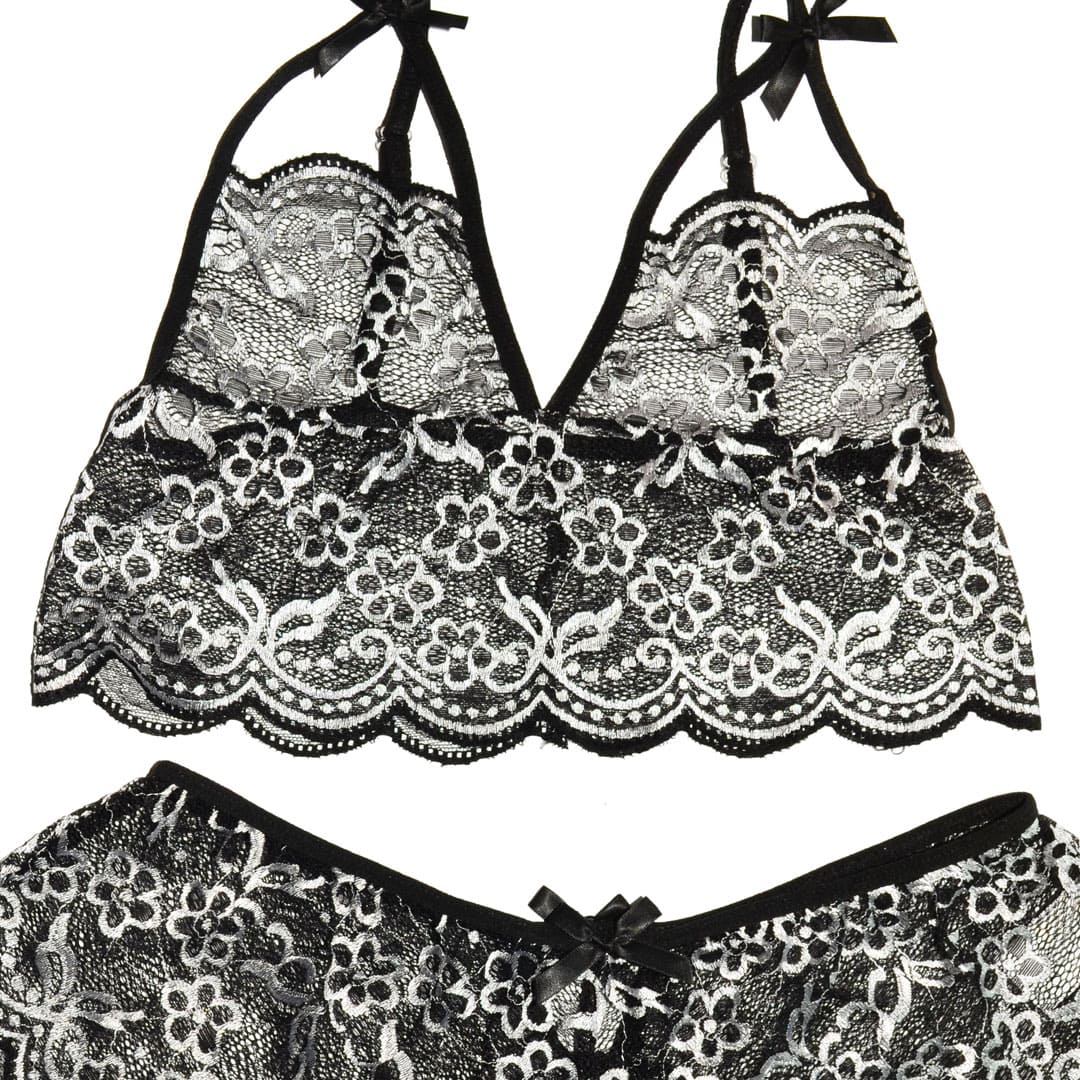 Чорний з білим еротичний комплект (ігровий костюм, костюм для рольових ігор) бюстгальтер та труси з квіткового мережива.