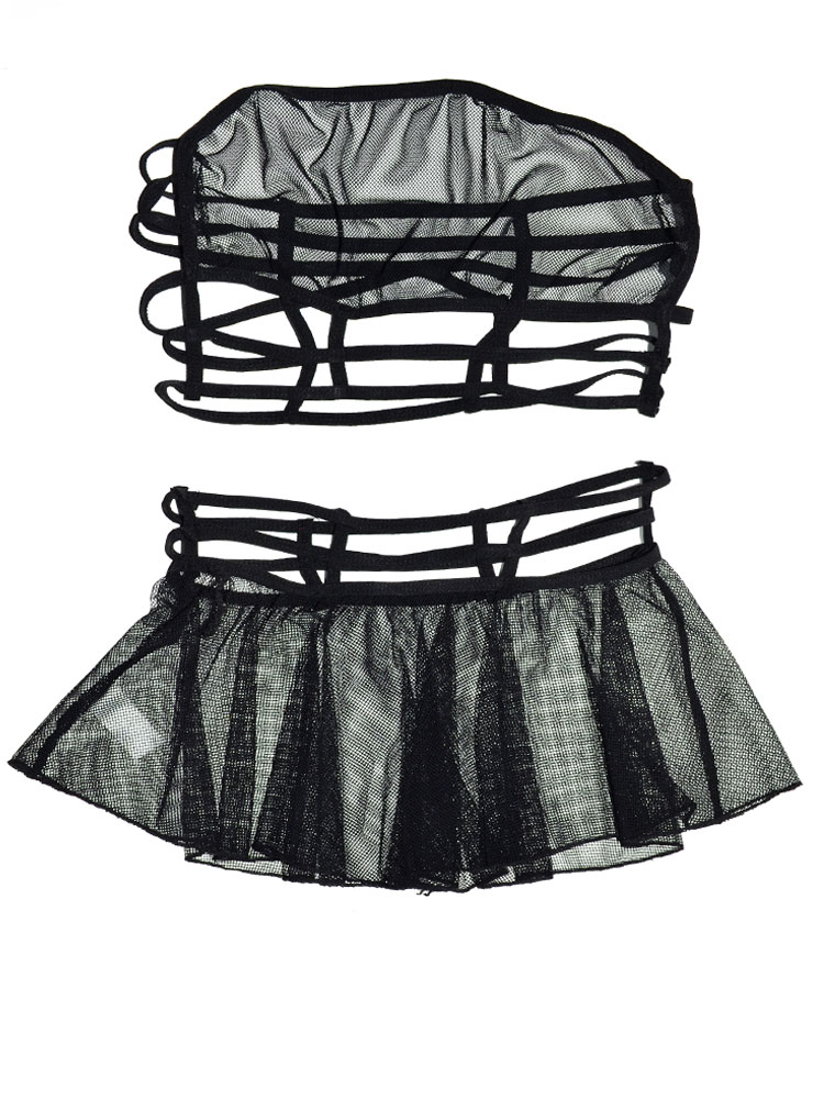 Еротичний комплект (ігровий костюм, костюм для рольових ігор) топ, мікро-спідниця в дрібну сіточку.