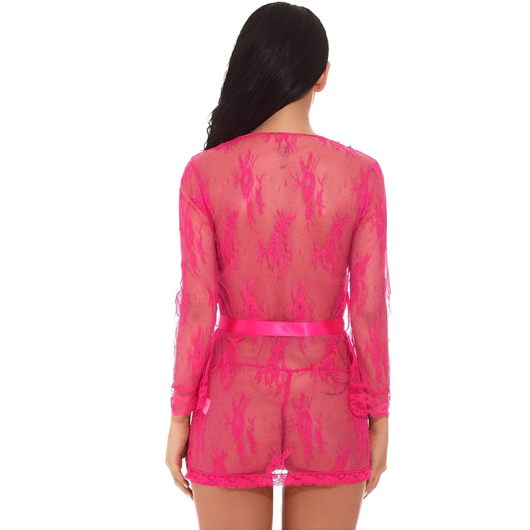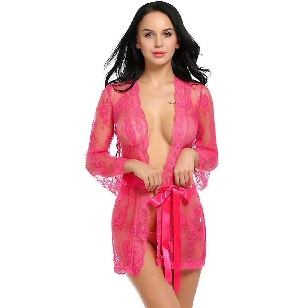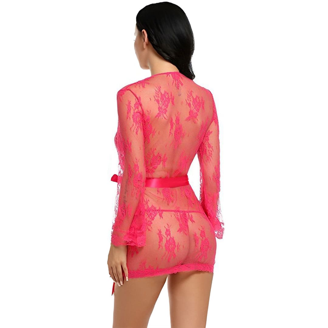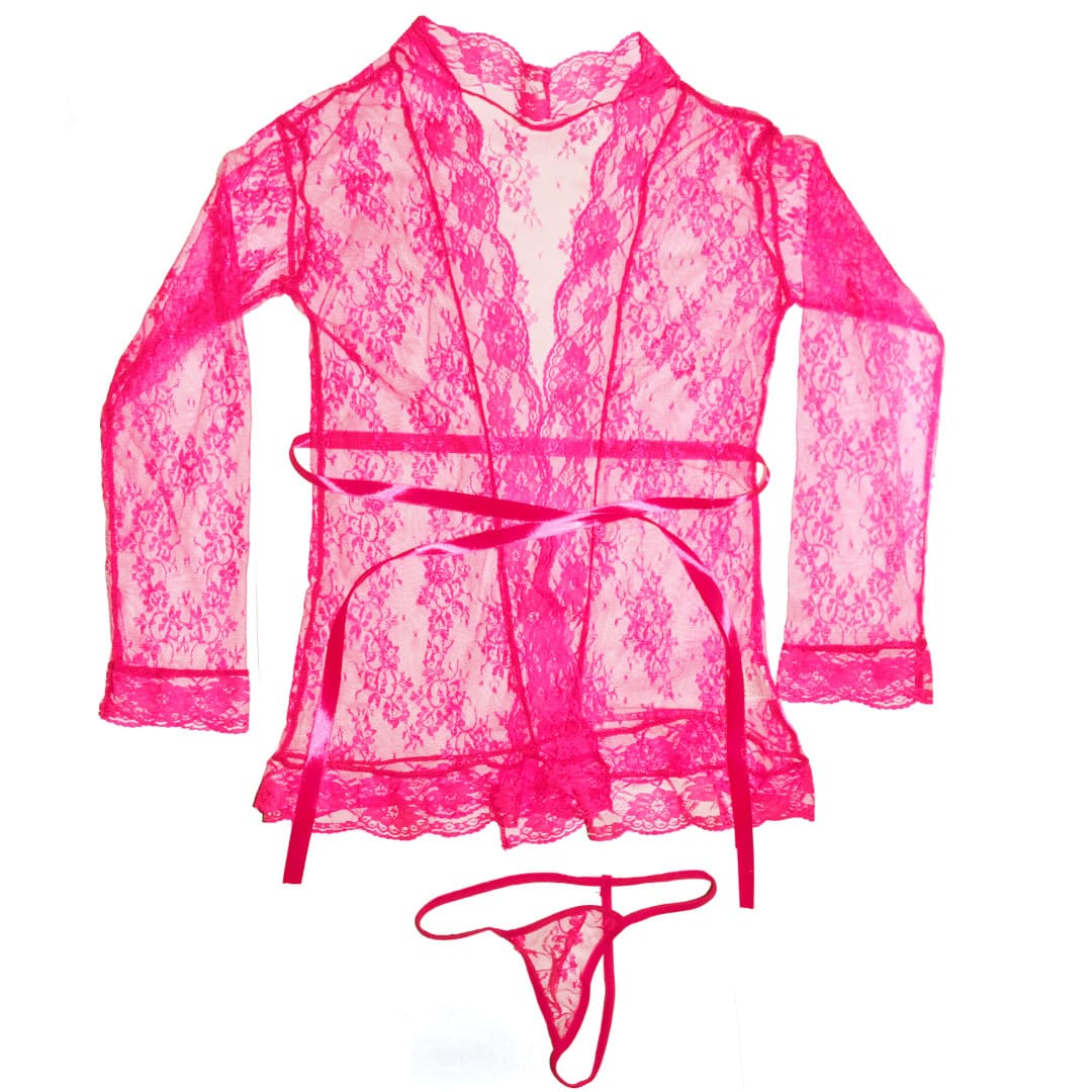 Еротичний прозорий комплект: халат і труси з прозорого квіткового мережива.