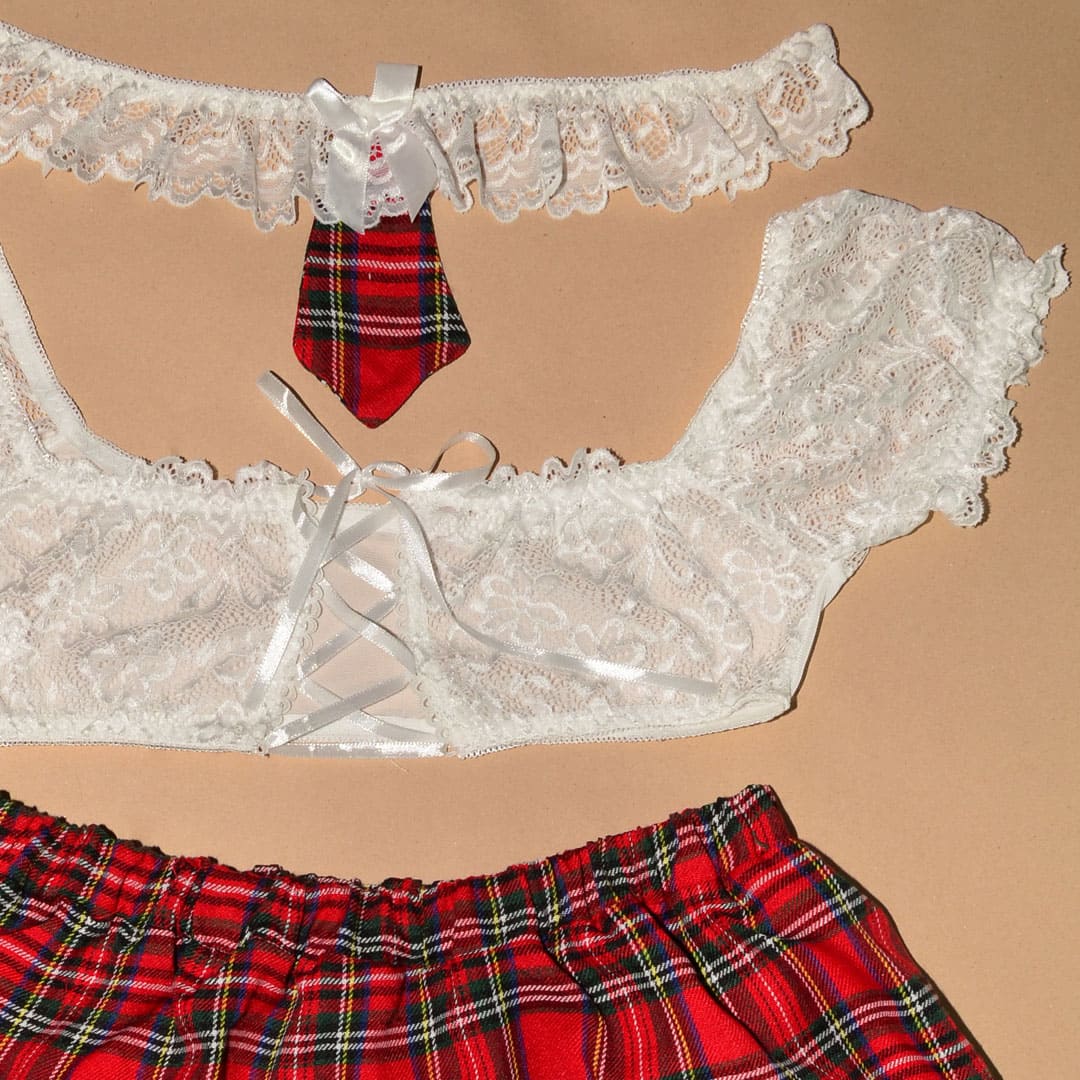 Еротичний ігровий костюм "Школярка" (костюм для рольових ігор): топ, спідниця, труси, комір з краваткою.