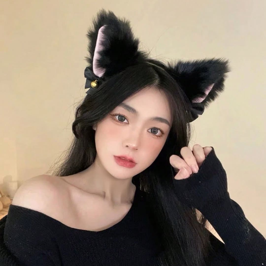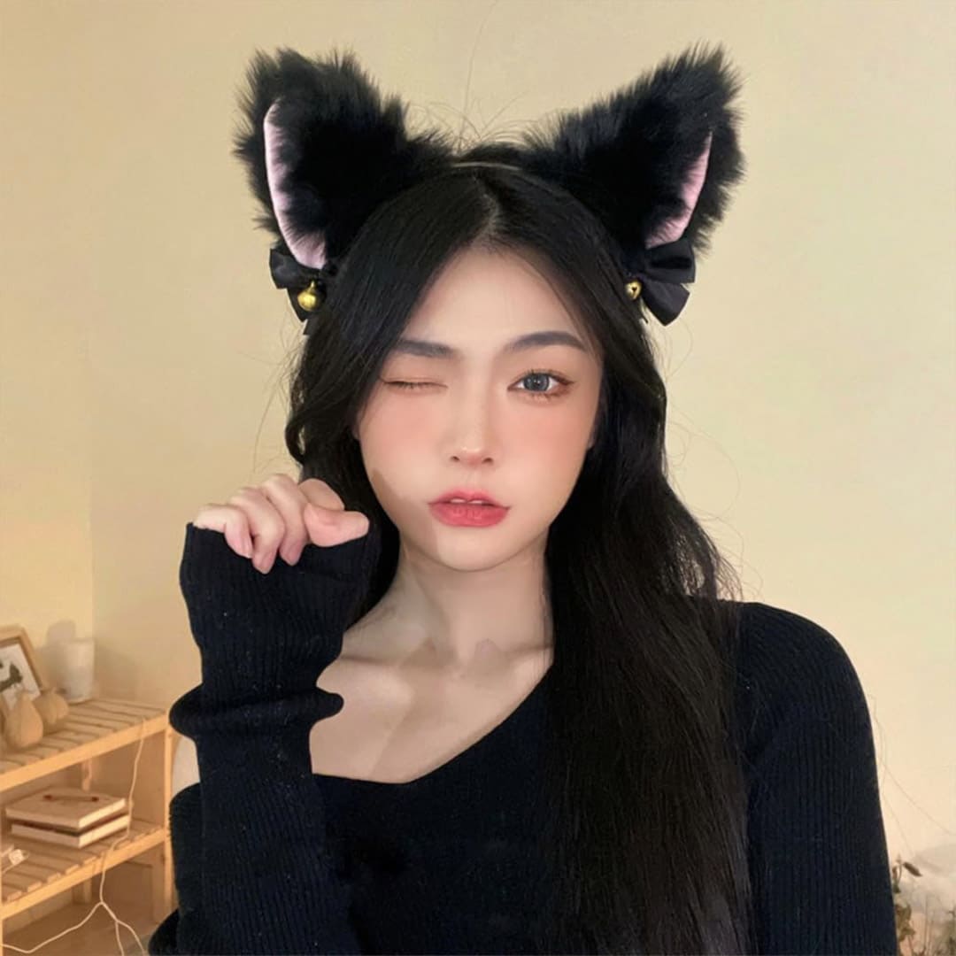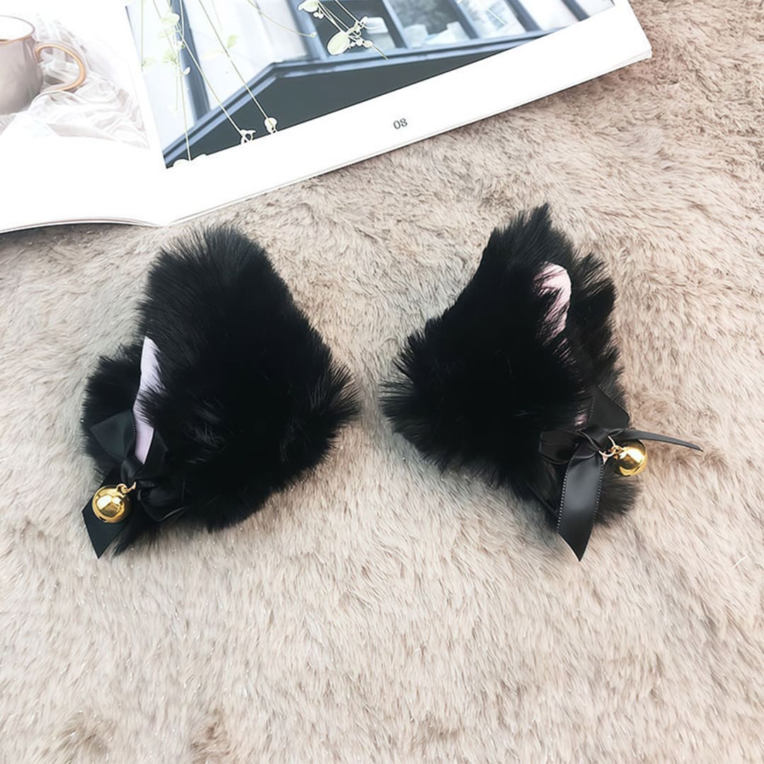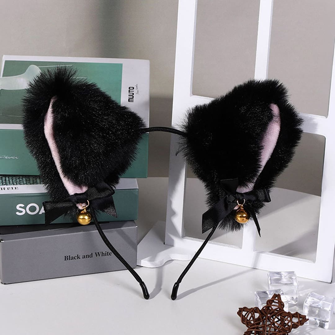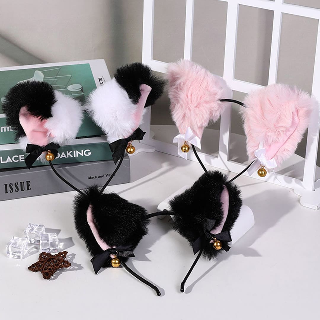 Обруч на голову обтягнутий тканиною з хутряними котячими вушками з атласними бантиками та дзвіночками, всередині вуха рожевий велюр.