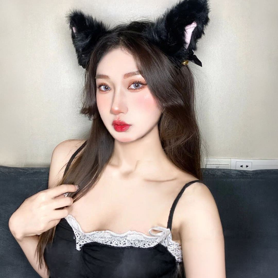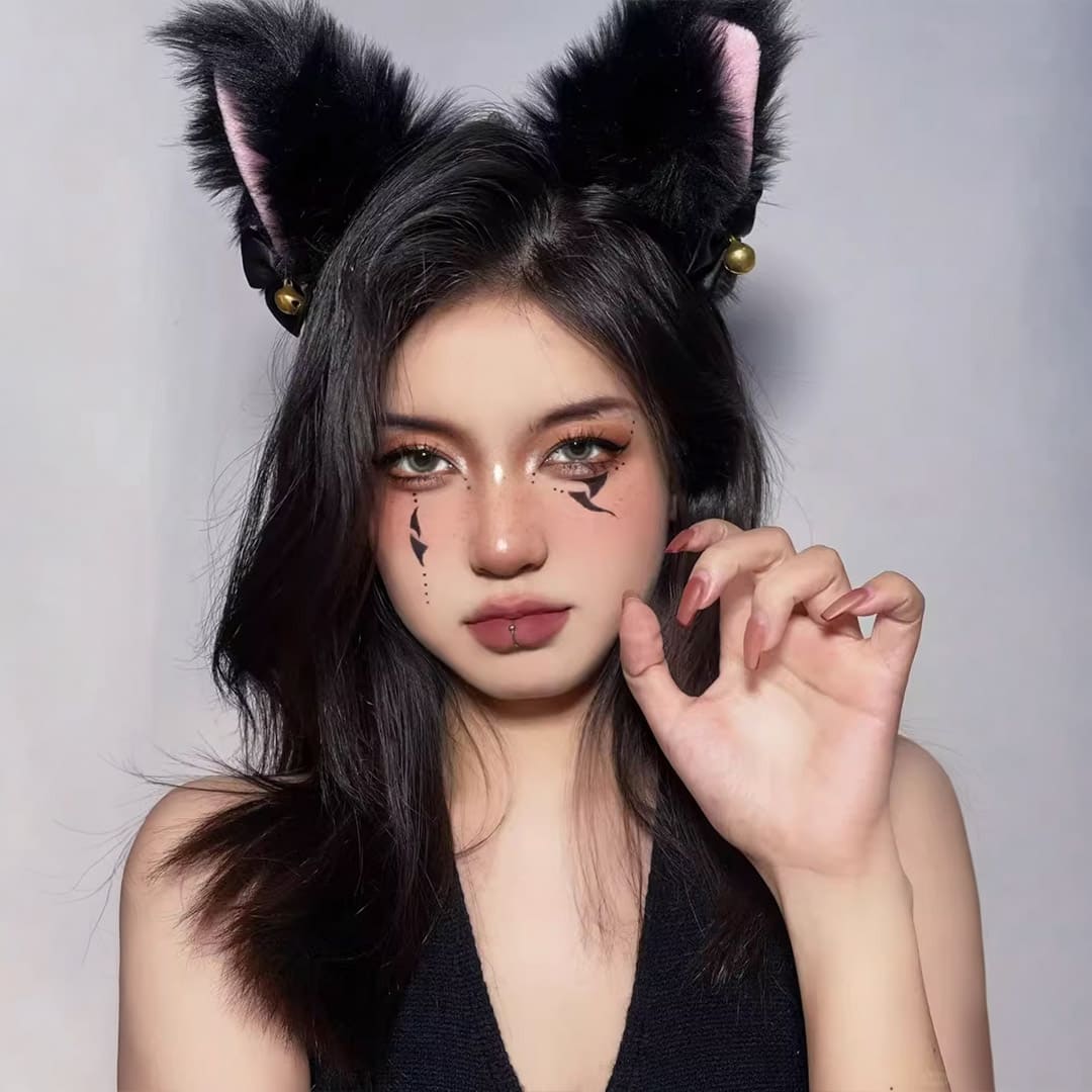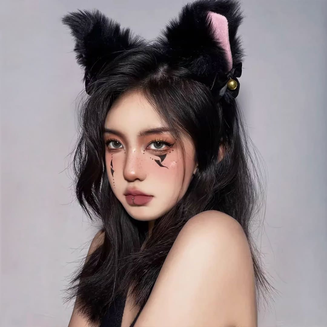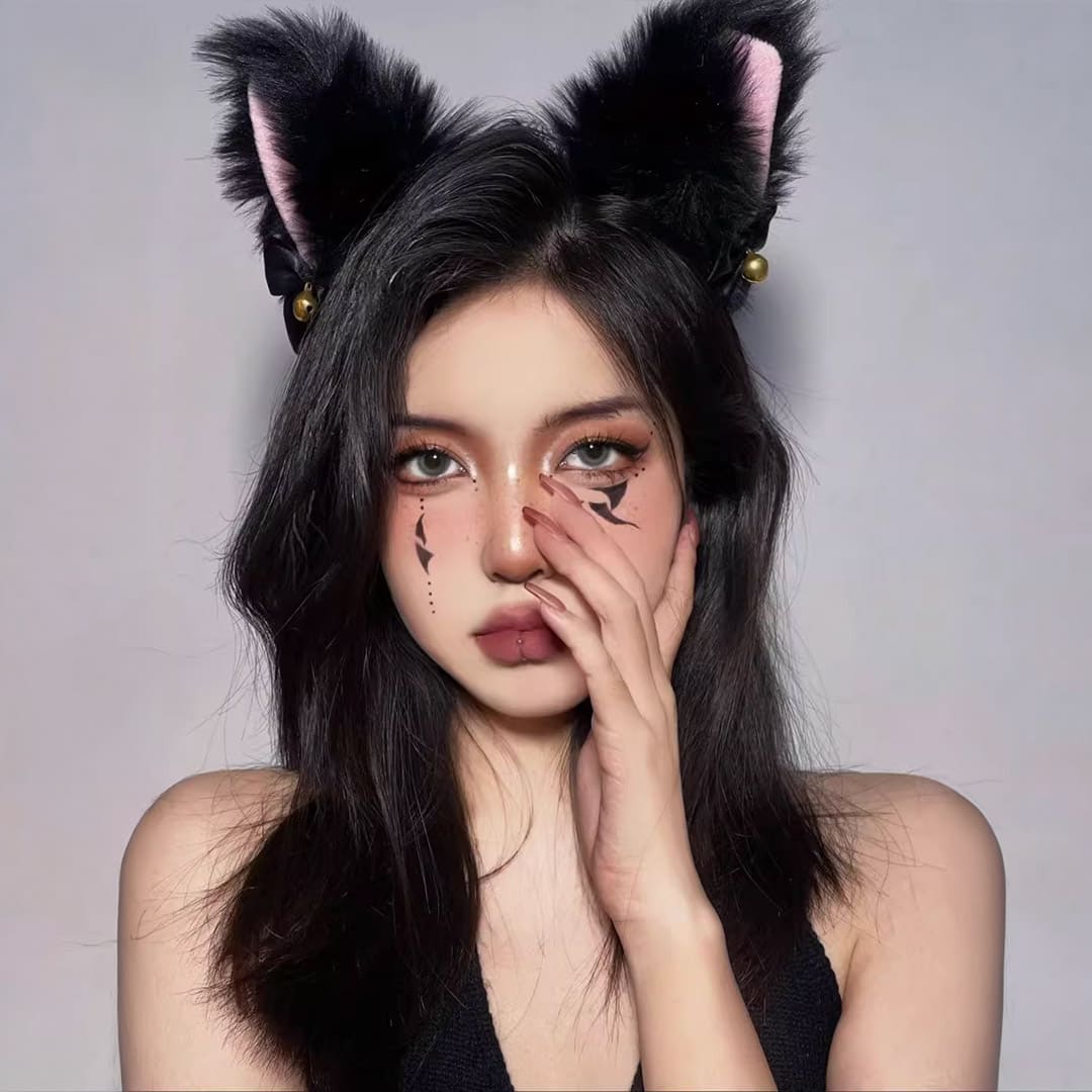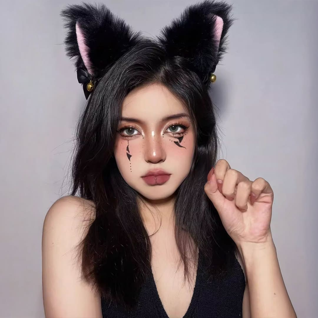 Обруч на голову обтягнутий тканиною з хутряними котячими вушками з атласними бантиками та дзвіночками, всередині вуха рожевий велюр.