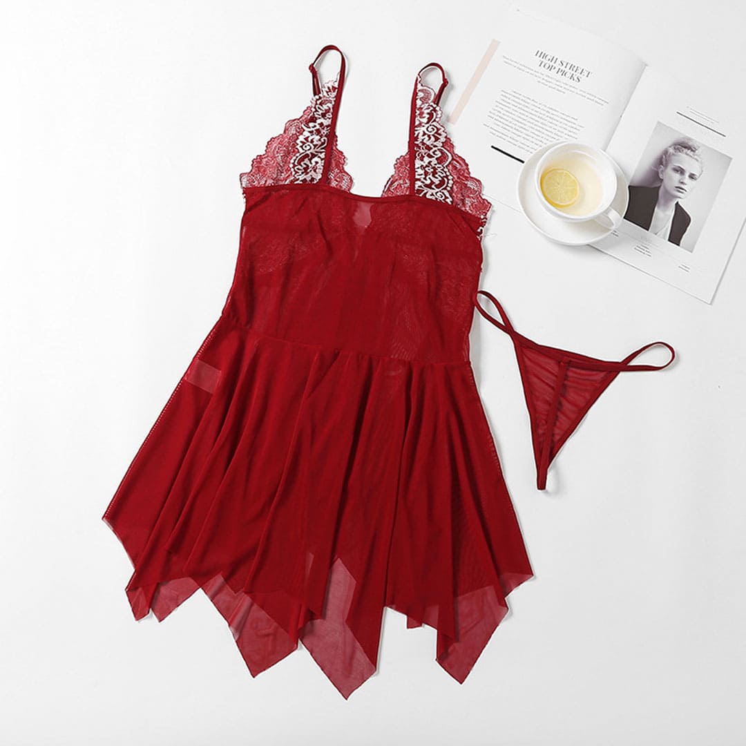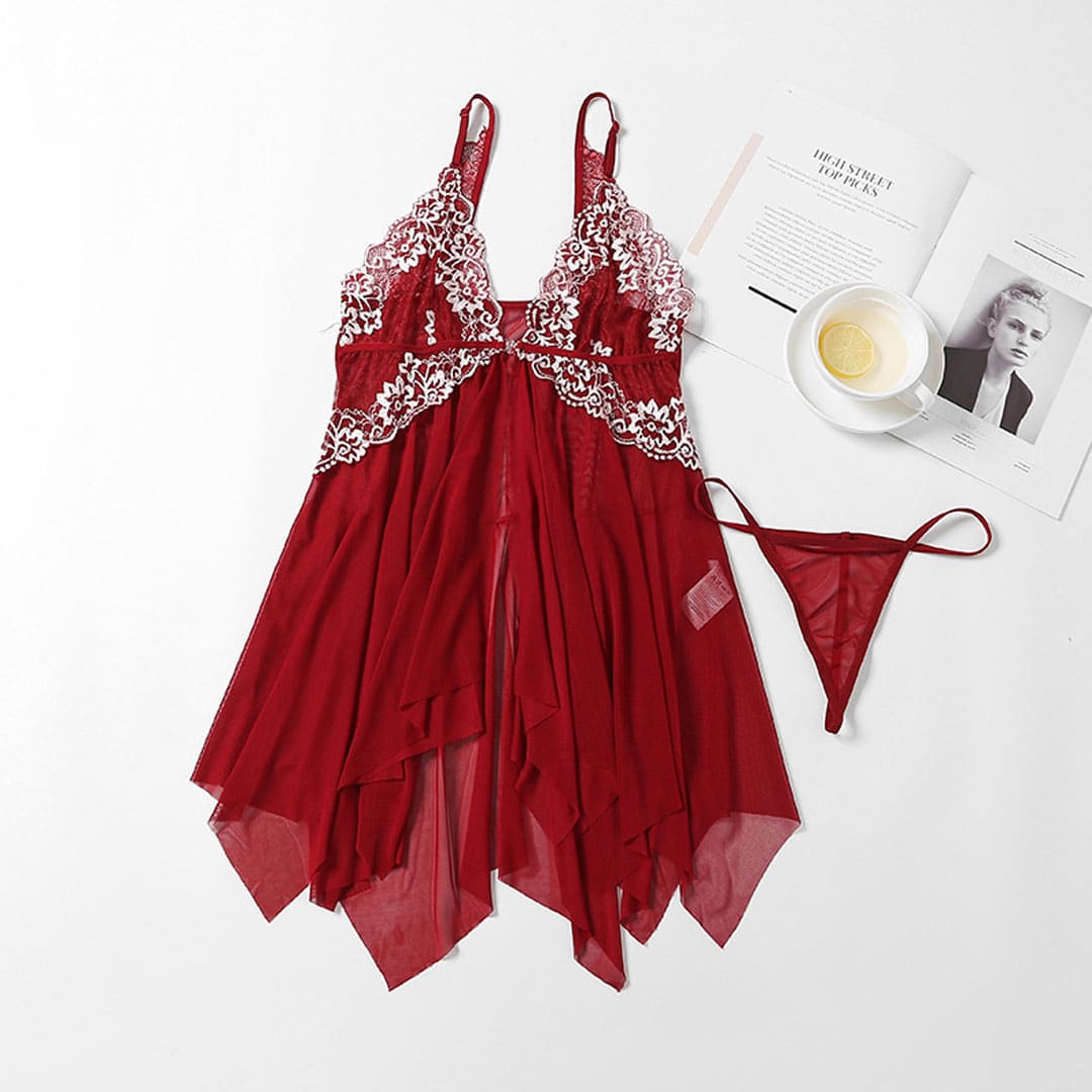 Бордовий еротичний комплект (костюм для рольових ігор): пеньюар і труси: