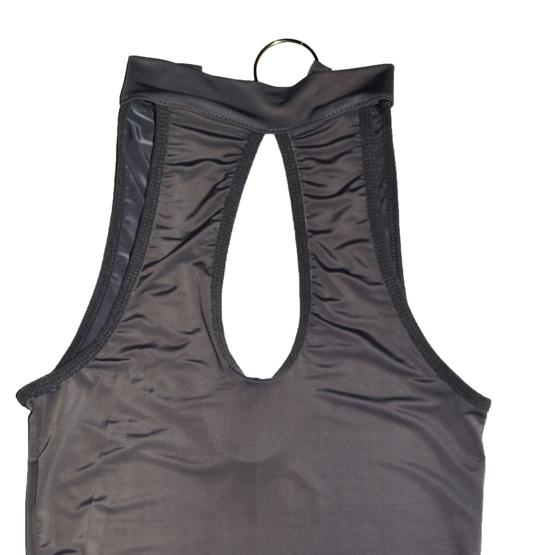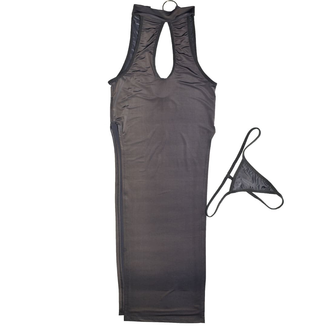 Сірий еротичний комплект (костюм для рольових ігор): пеньюар та труси з еластичного глянсового матеріалу.