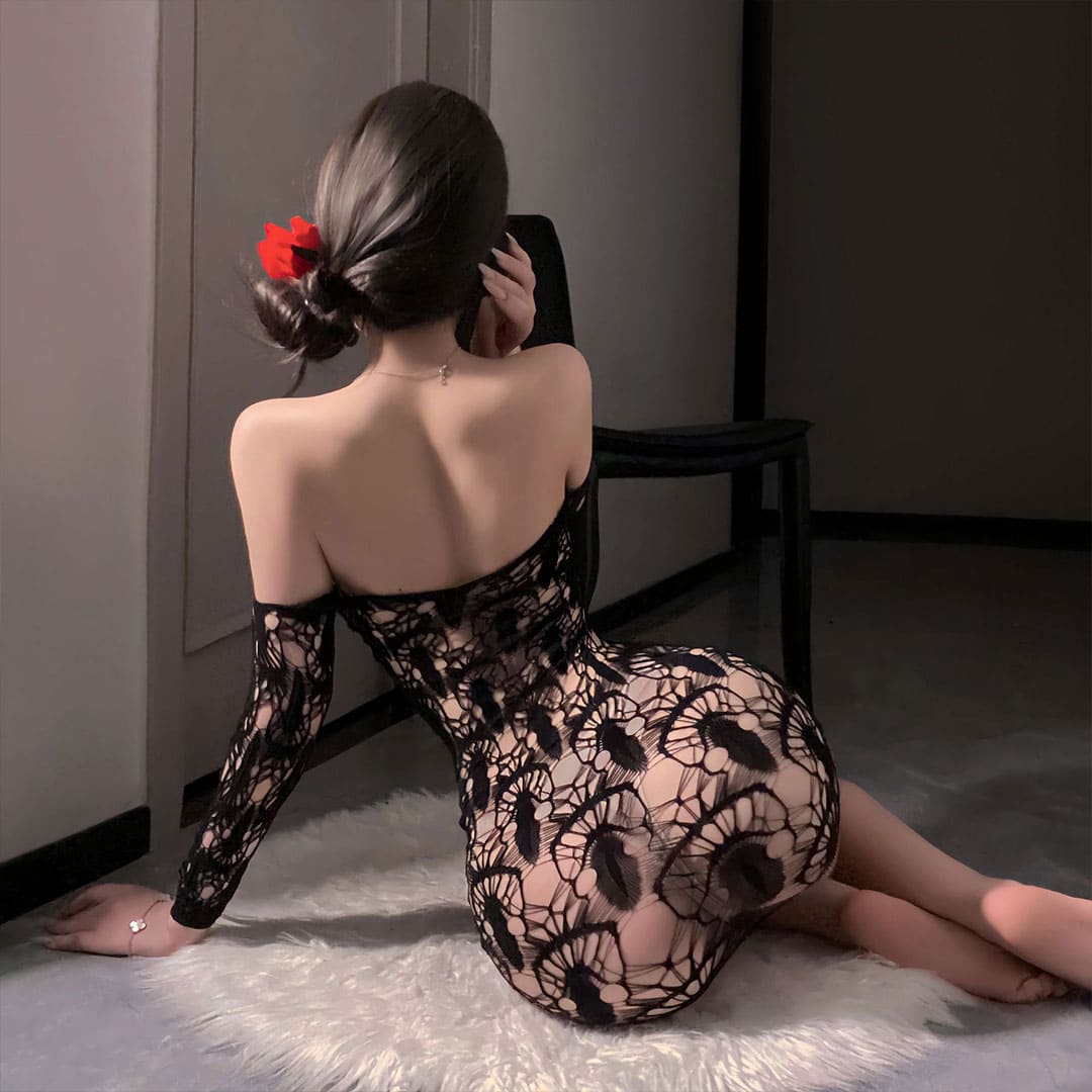 Еротичний прозорий короткий Пеньюар "Сітка" в ажурну сітку з широким вирізом горловини та рукавом три чверті.