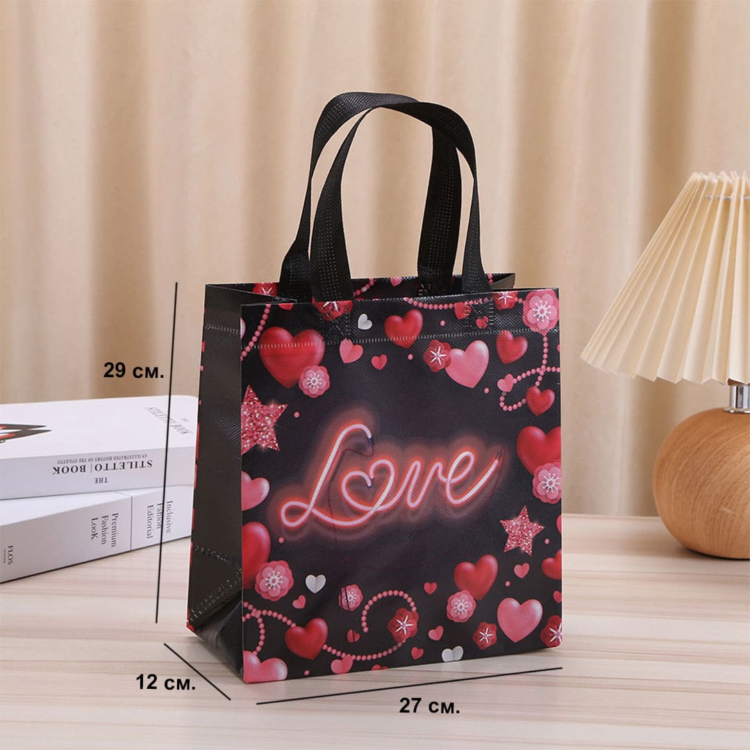 Подарункова ЕкоТорба (шопер) з написом "Love", петлеві ручки та донне розширення, водонепроникна. Розміри: 23х22х11 см., 29х27х12 см. Матеріал: ламінований спанбонд.