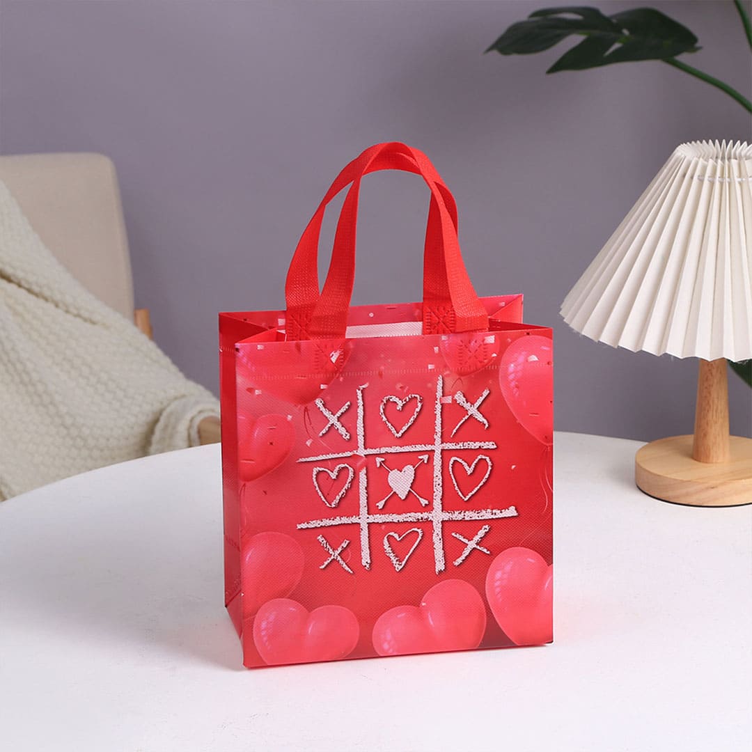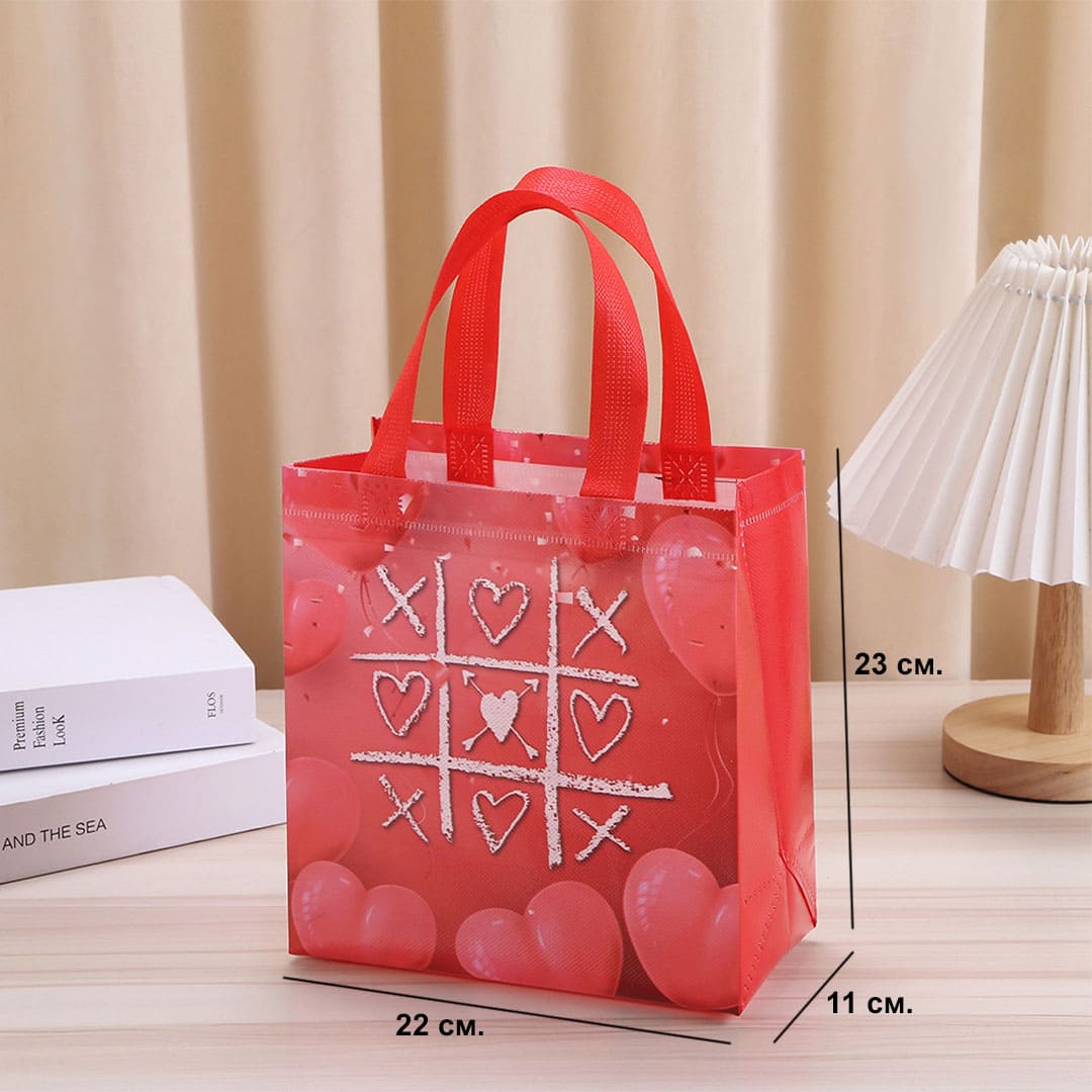 Подарункова ЕкоТорба (шопер) з малюнком гри хрестики-нуліки але замість 0 серця, петлеві ручки та донне розширення, водонепроникна. Розміри: 23х22х11 см., 29х27х12 см. Матеріал: ламінований спанбонд.