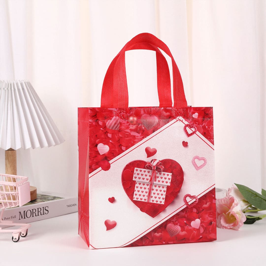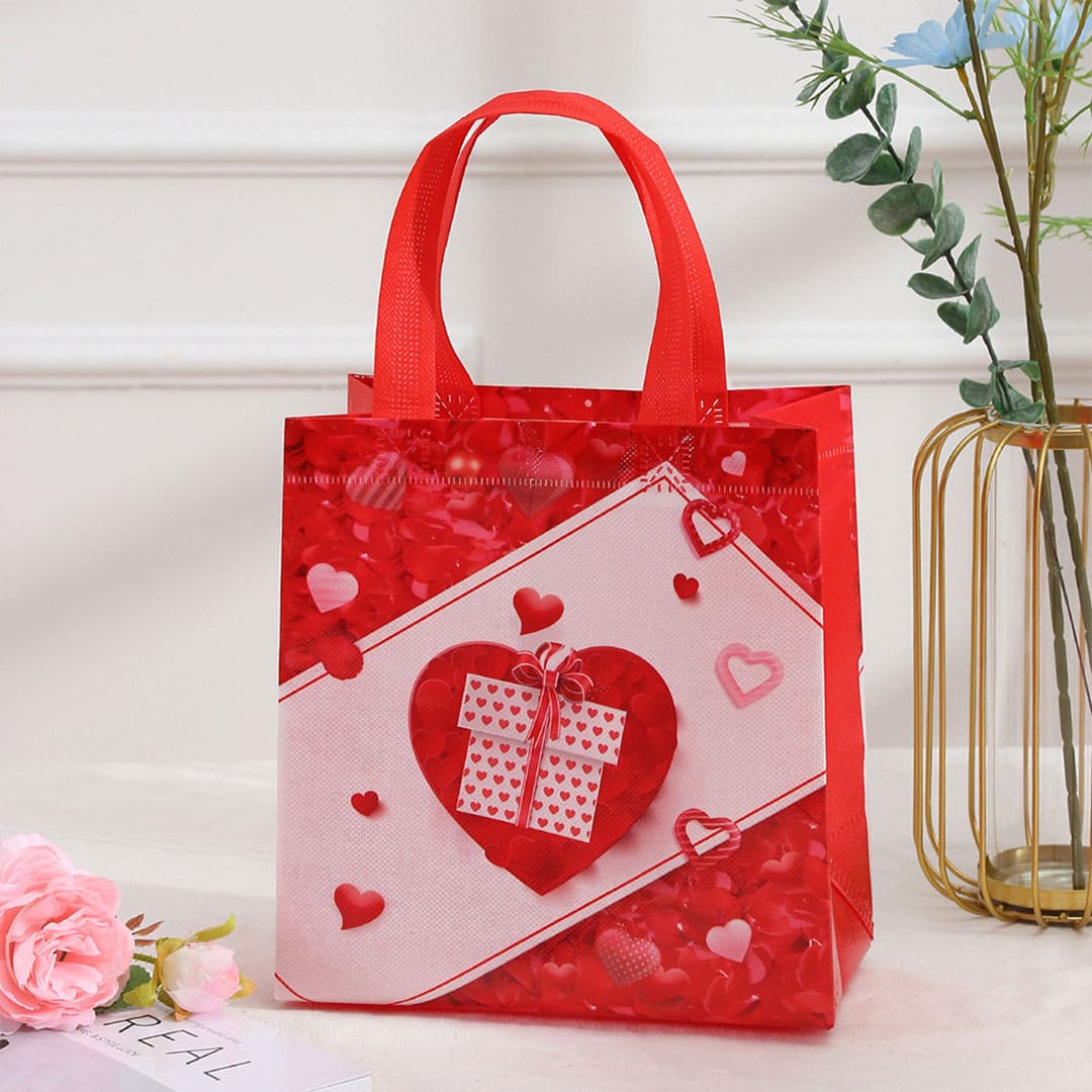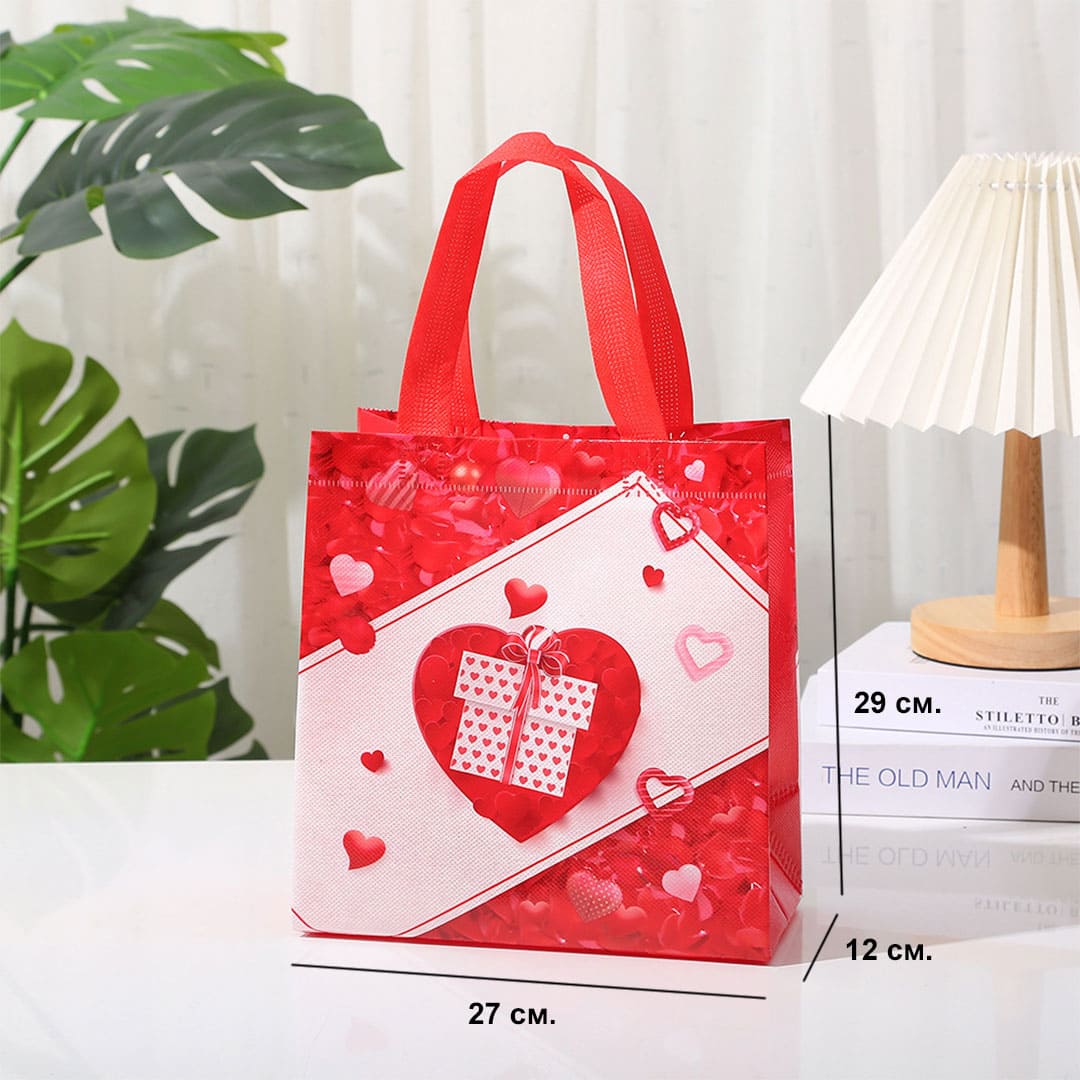 Подарункова ЕкоТорба (шопер) з малюнком серце з подарунком, петлеві ручки та донне розширення, водонепроникна. Розміри: 23х22х11 см., 29х27х12 см. Матеріал: ламінований спанбонд.