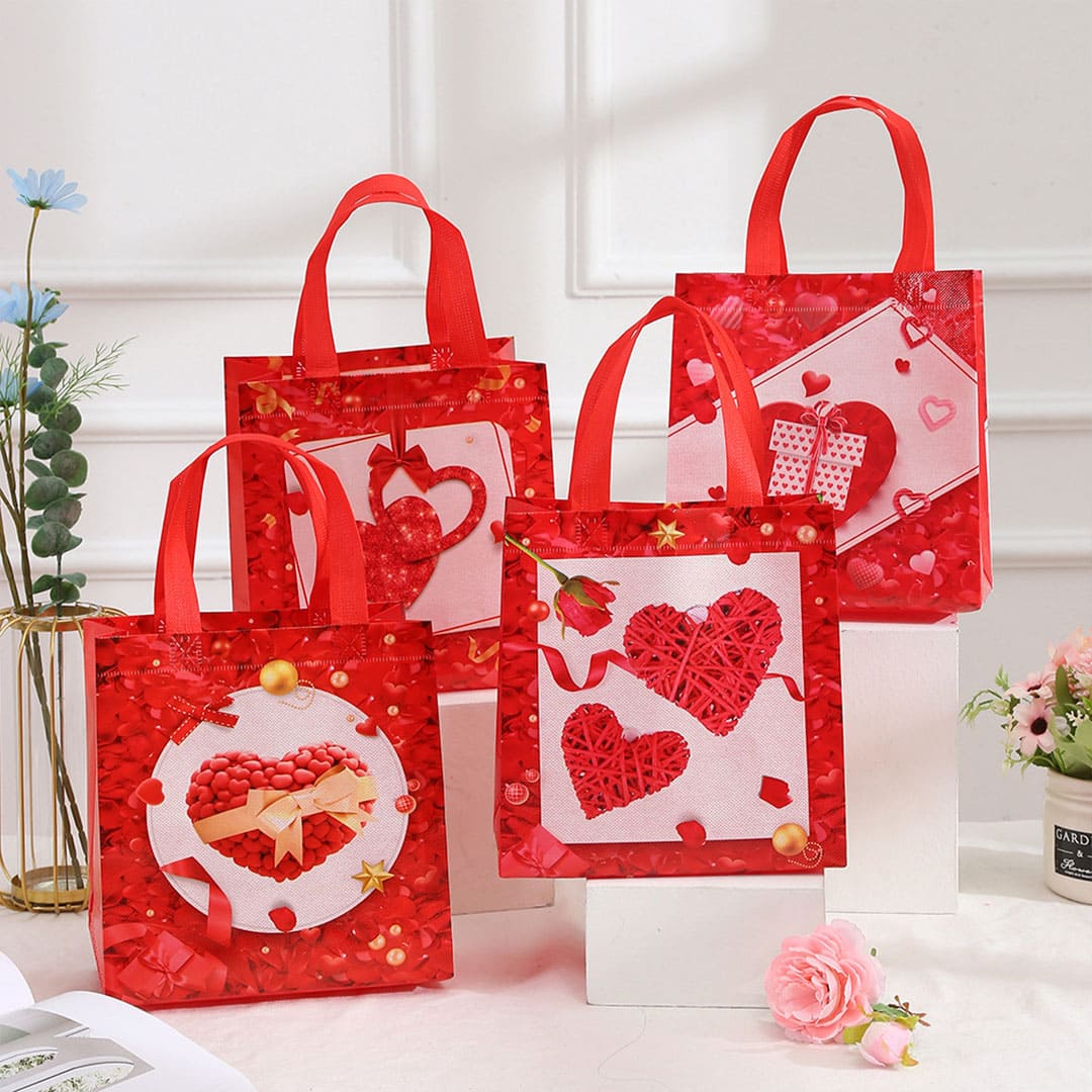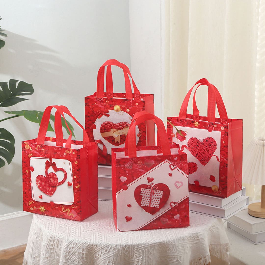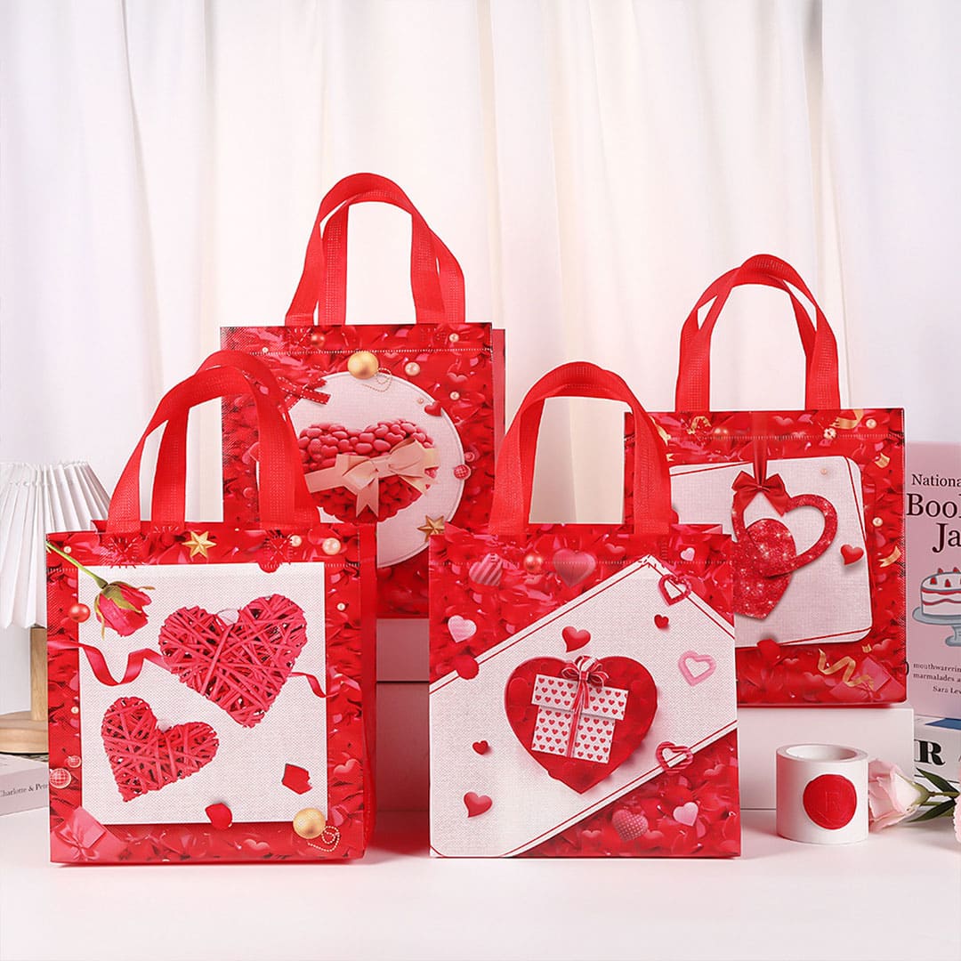 Подарункова ЕкоТорба (шопер) з малюнком серце з подарунком, петлеві ручки та донне розширення, водонепроникна. Розміри: 23х22х11 см., 29х27х12 см. Матеріал: ламінований спанбонд.