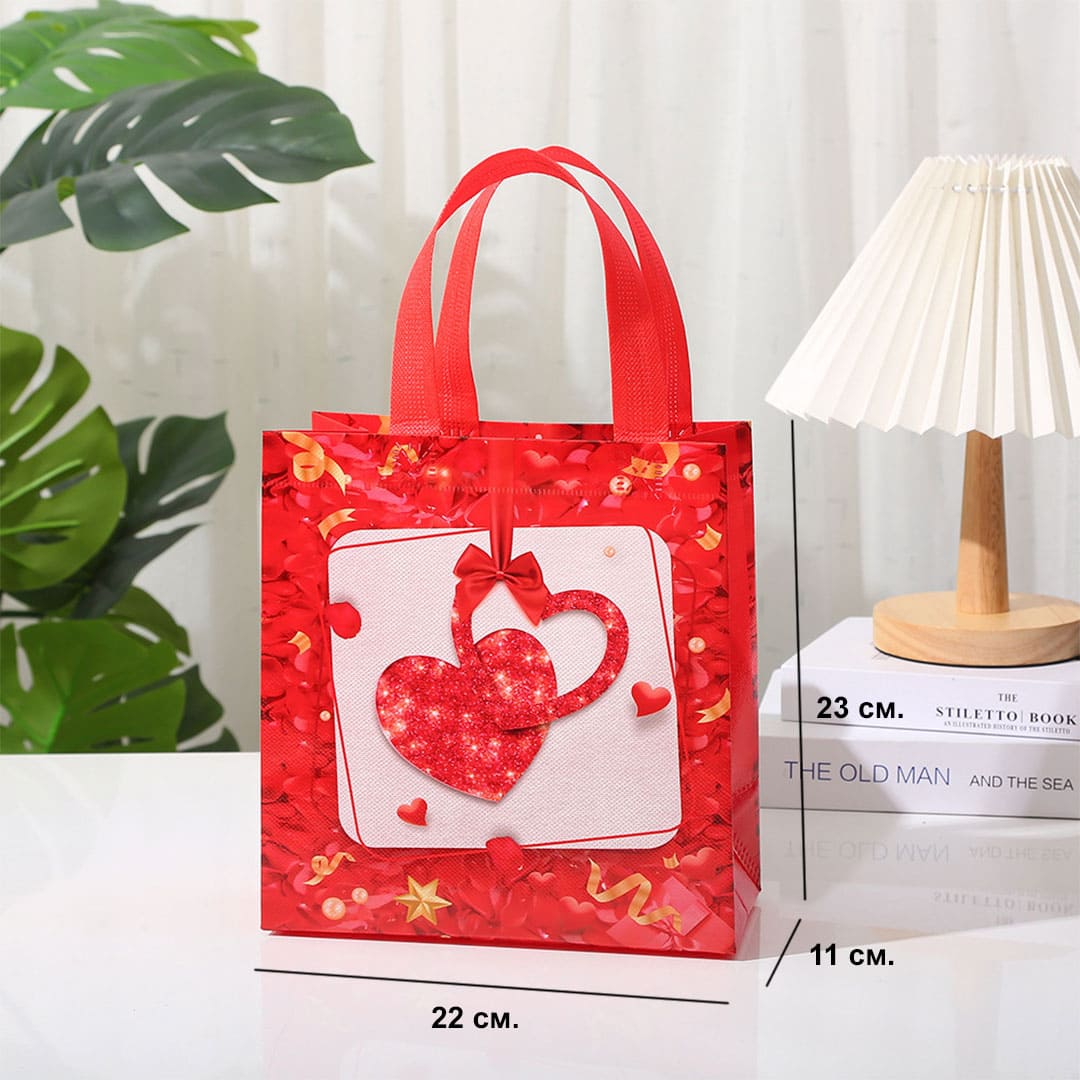Подарункова ЕкоТорба (шопер) з малюнком сердечки, петлеві ручки та донне розширення, водонепроникна. Розміри: 23х22х11 см., 29х27х12 см. Матеріал: ламінований спанбонд.