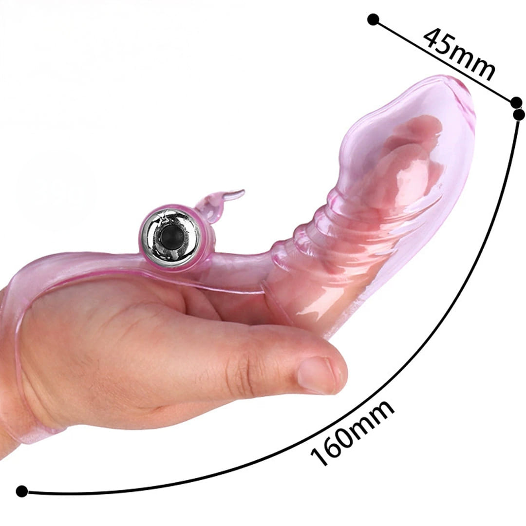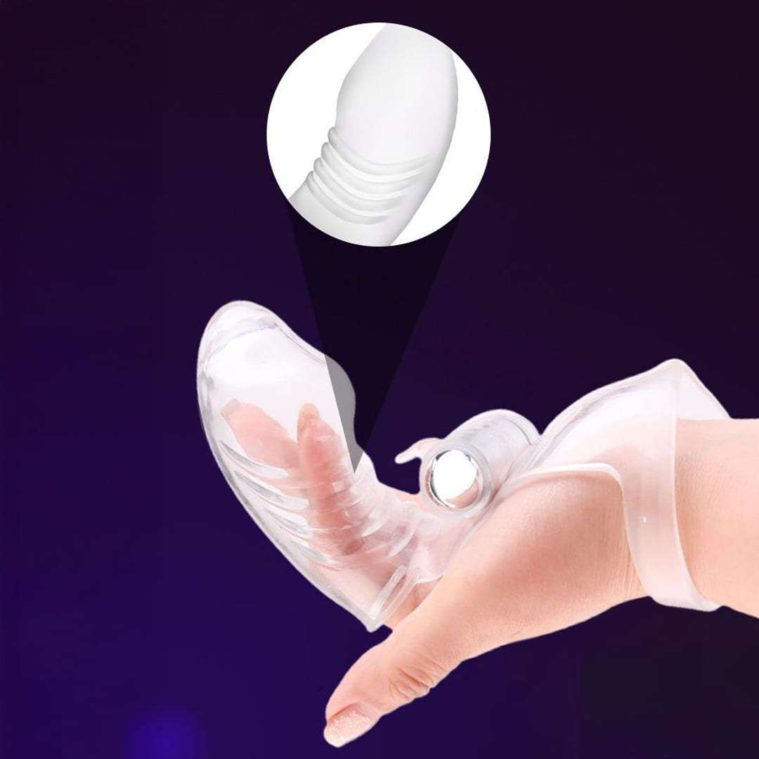 Рельєфна насадка надягається на два пальці руки для точного впливу на точку G, а вбудований віброелемент на долоні одночасно стимулює клітор, підсилюючи відчуття.
