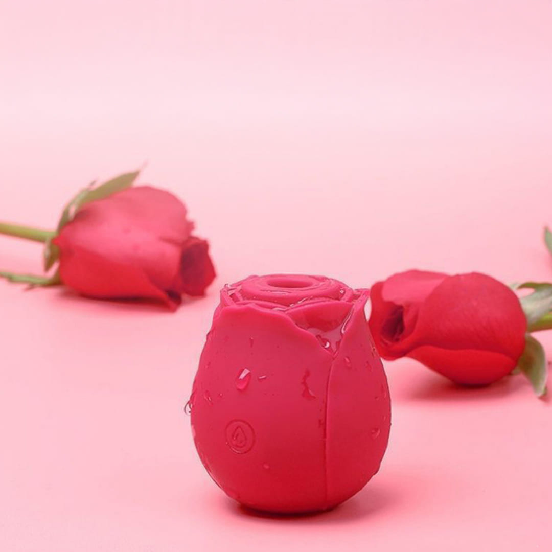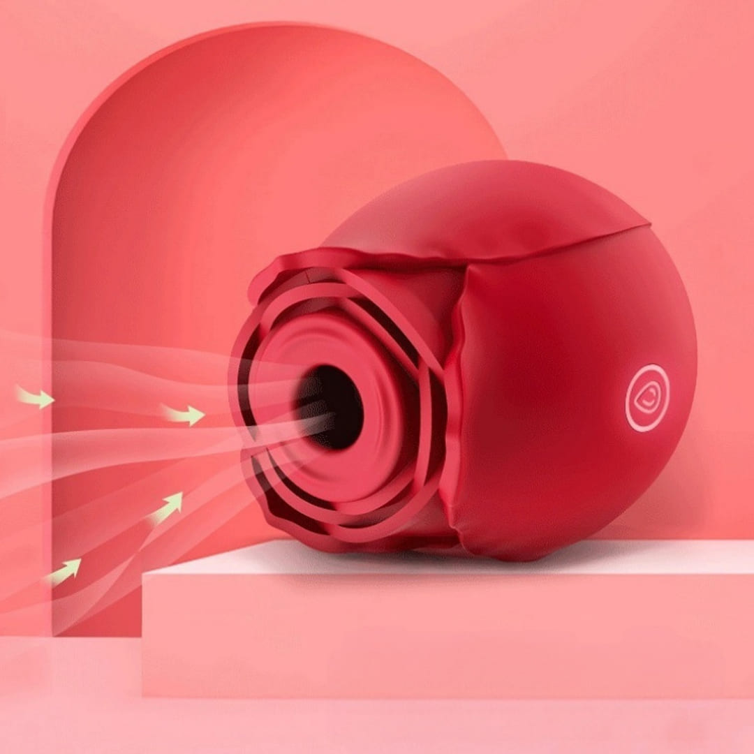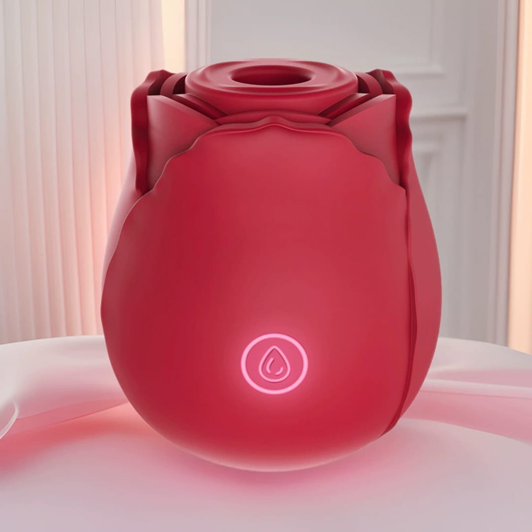 Червоний вакуумно-хвильовий силіконовий стимулятор у формі рози