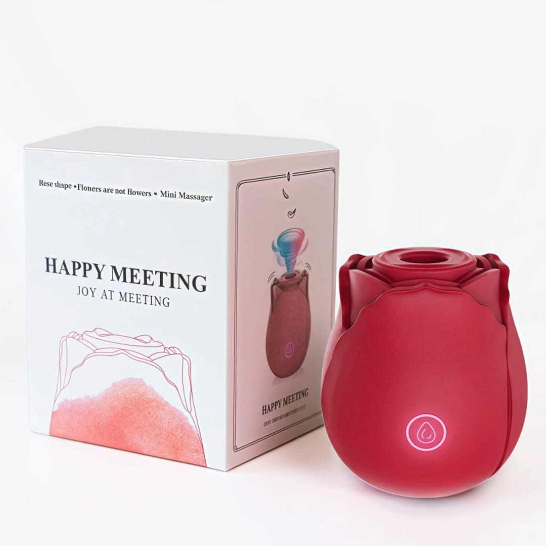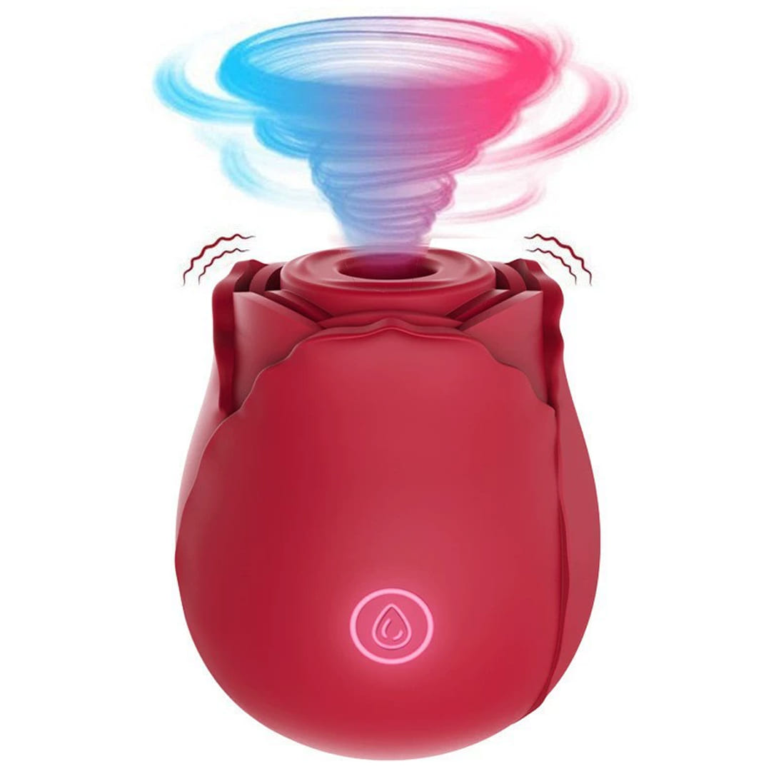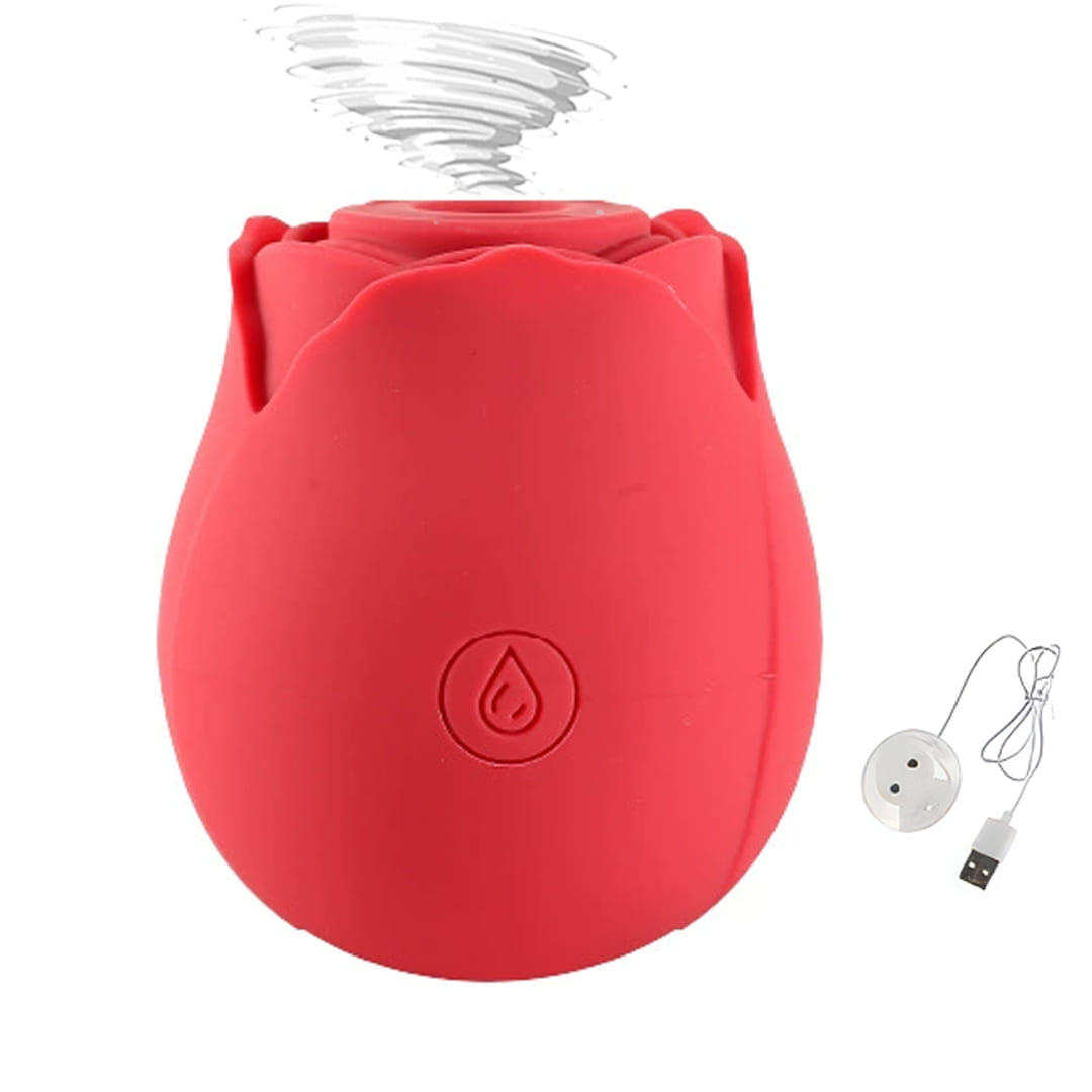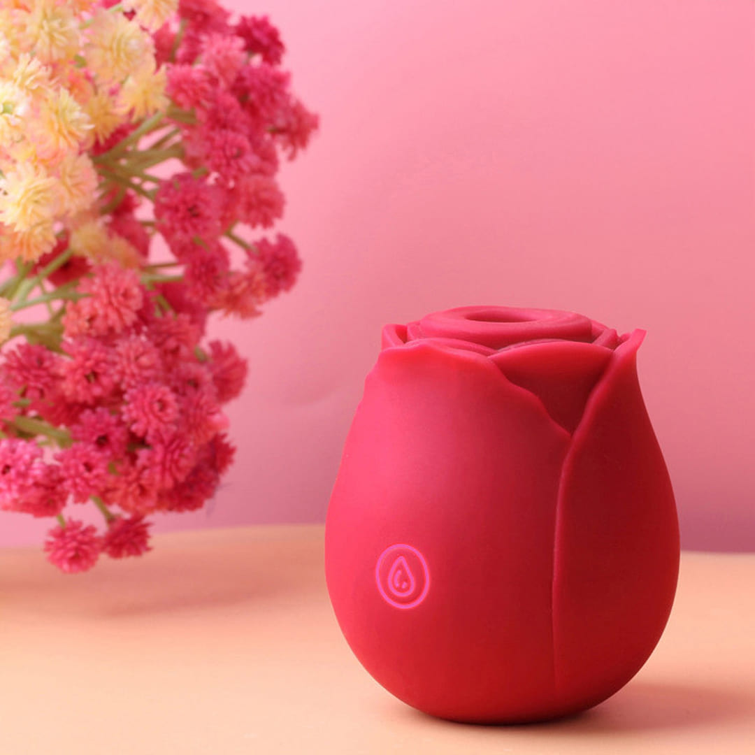 Червоний вакуумно-хвильовий силіконовий стимулятор у формі рози
