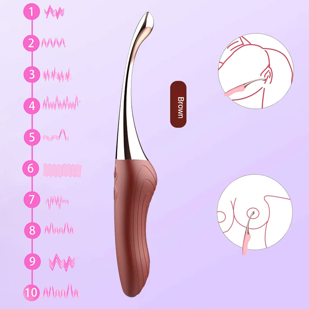 Невеликий, але потужний вібратор із трьома насадками подарує хвилі задоволення, стимулюючи найчутливіші точки тіла — клітор, соски, точку G та інші ерогенні зони. Завдяки 10 режимам вібрації ви зможете обрати ідеальний ритм для себе. Відчуйте різницю кожного дотику.