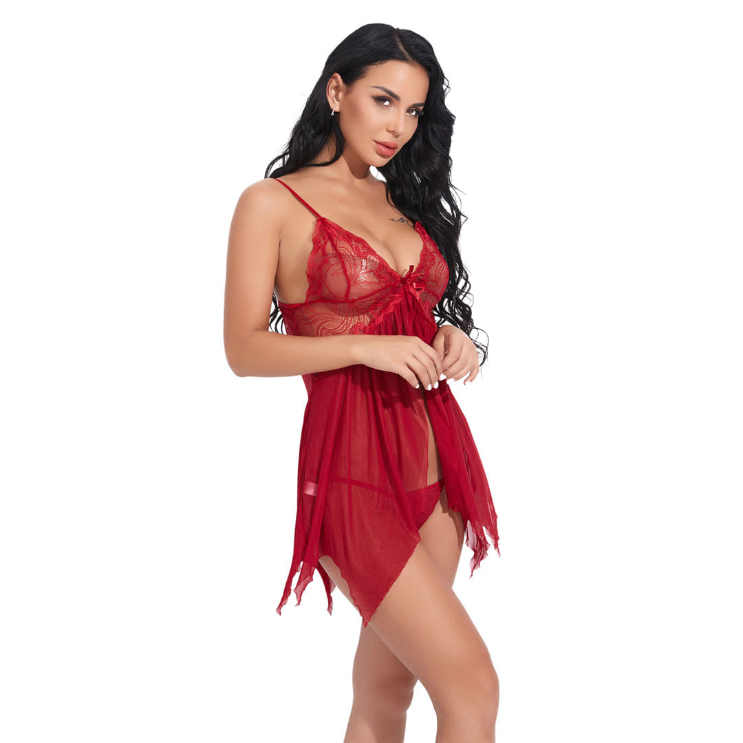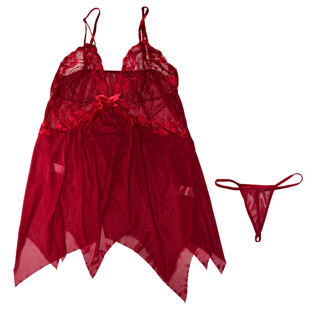 Бордовый эротический комплект (костюм для ролевых игр): пеньюар и трусы: