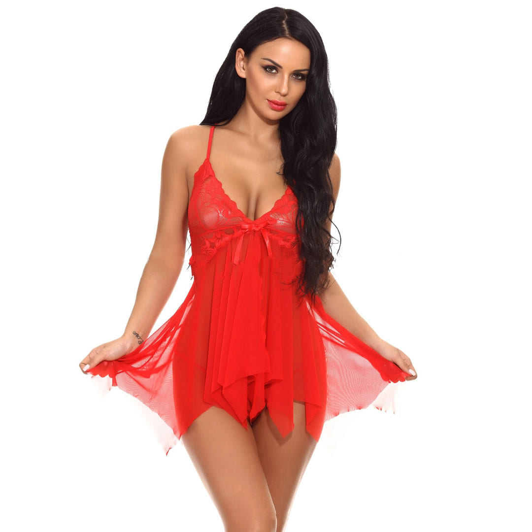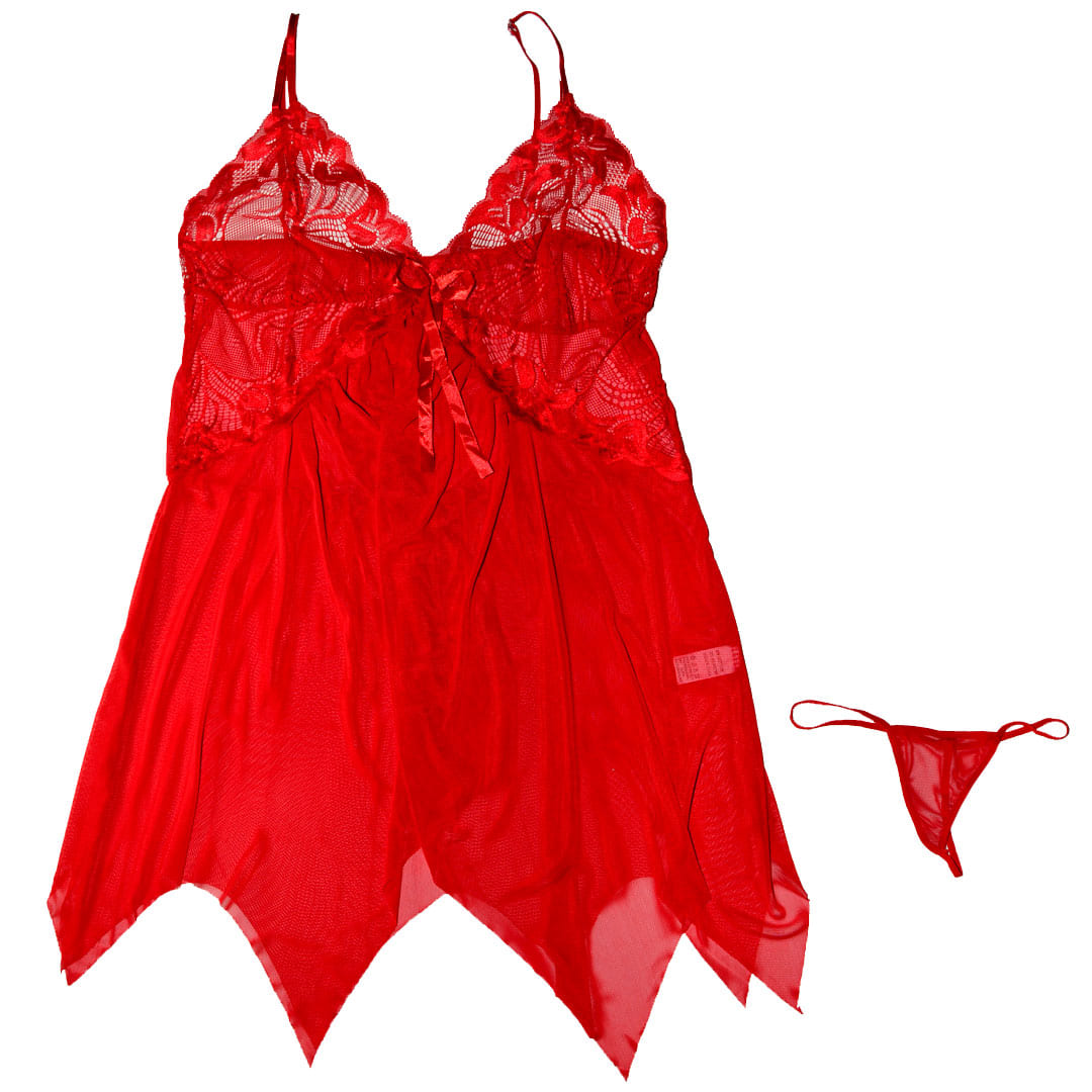 Красный эротический комплект (костюм для ролевых игр): пеньюар и трусы: